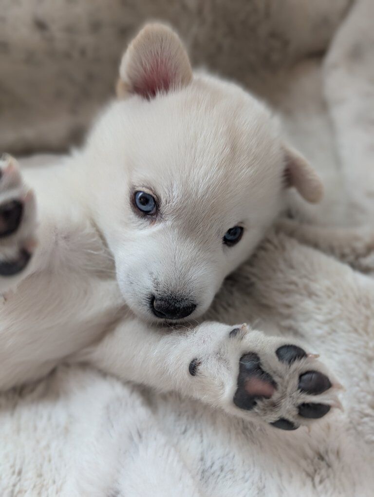 VenmoThese Klee Kai (Mini Husky) dogs are the best breed! We have a stark white female and two reddish/honey colored males left. I included a picture of the back of the boys so you can see what color they are. All have blue eyes. We went with a "car theme" for names this time...Capri is the female, Dodge is the darker male, and Chevy is the lighter male.