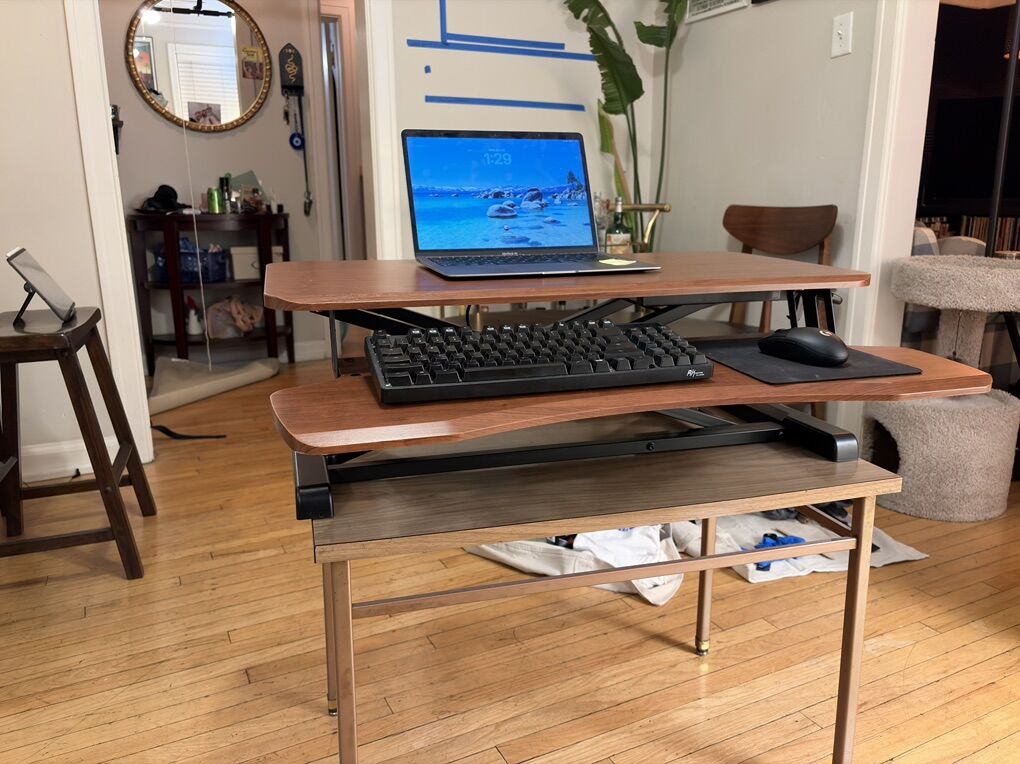 Sits on top of an existing desk. Perfect for home office or work-from-home setup.