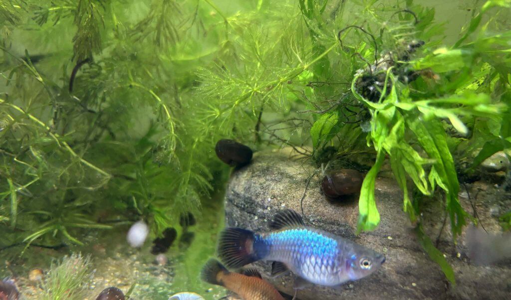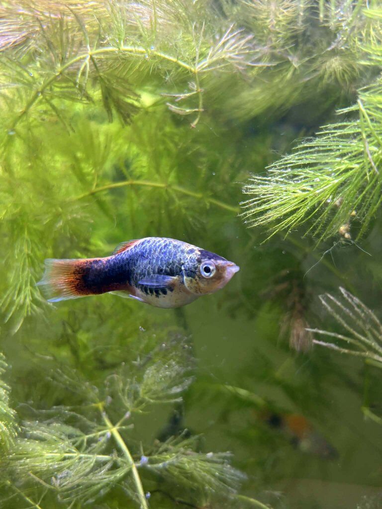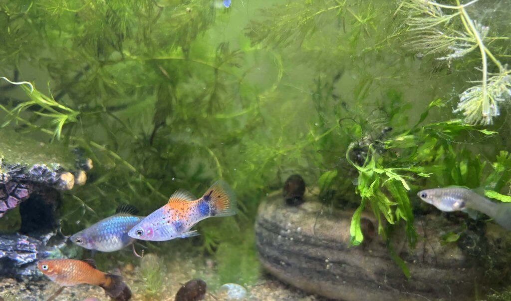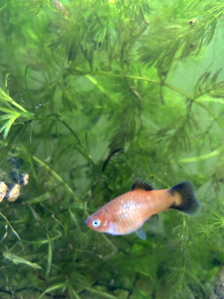 Platy fry first three photos are my available fry. The older set thats starting to show color is orange and black. My next couple of recent batches haven't started to show color quite yet but should be soon. The adults aren't available but these are what the parents look like so you can get an idea on what colors you may get. Both males are Mickey mouse platys the rest are female (I also have a couple females not pictured yet)