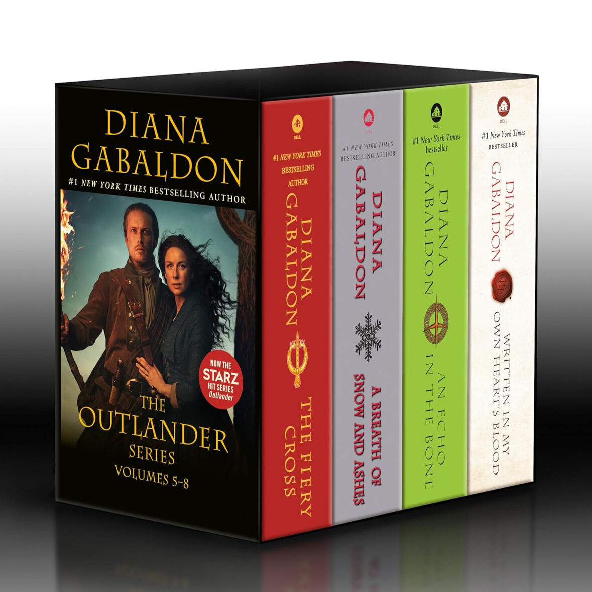 Books included- outlander, dragonfly in amber, voyager, drums of autumn, the fiery cross, a breath of snow and ashes, an echo in the bone, written in my own hearts blood.