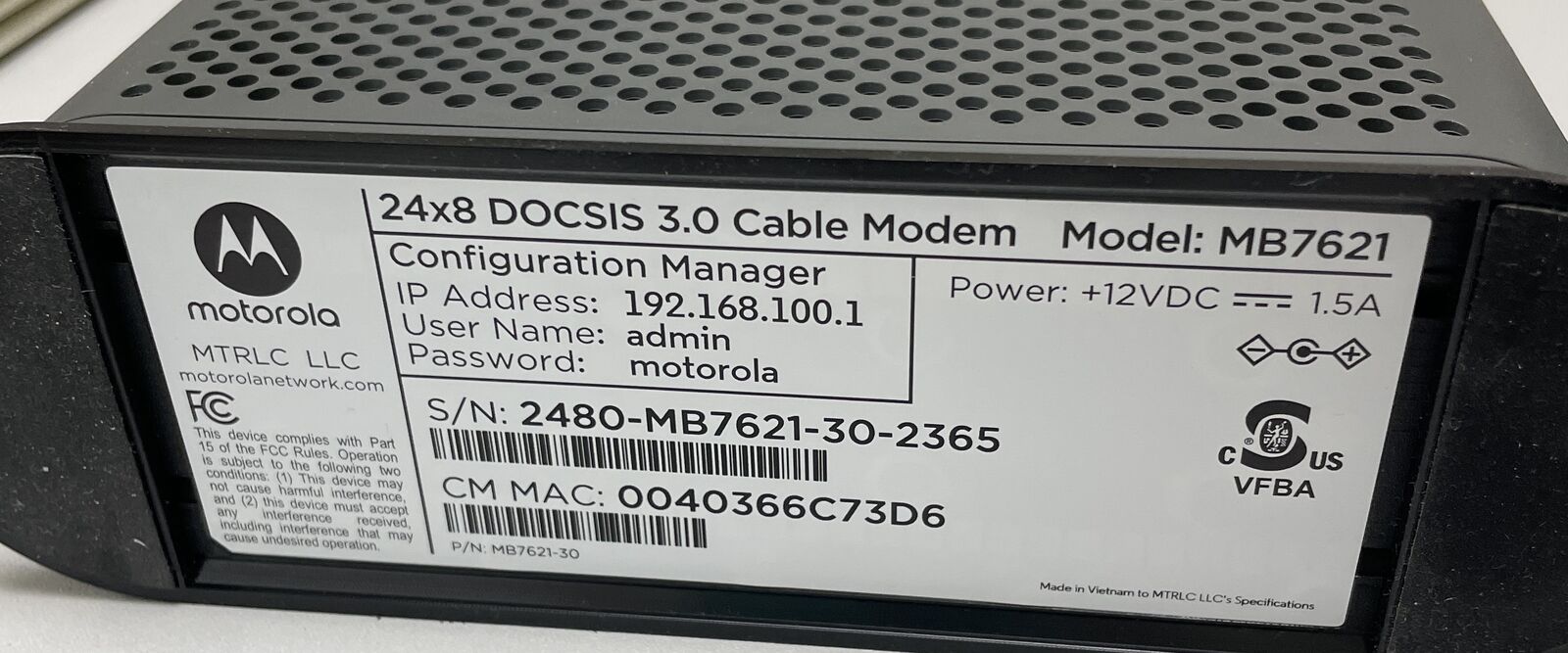VenmoMotorola Cable Modem
