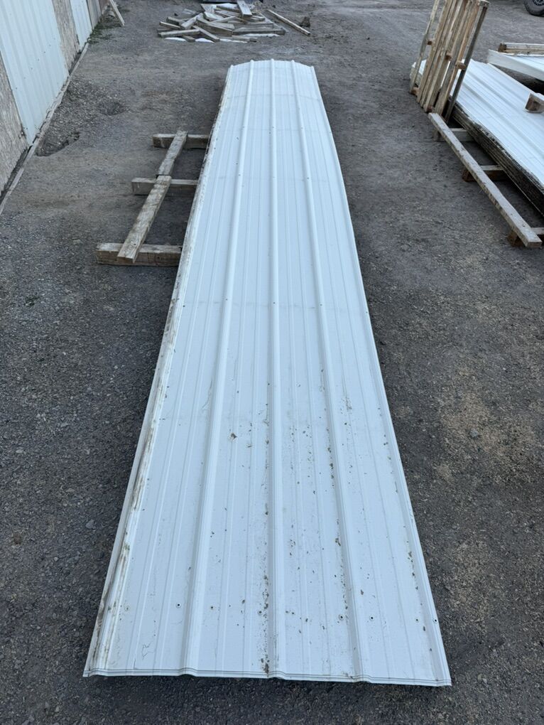 VenmoWe have approximately 2000 panels of 20’x3’ used white metal roofing available. Panels are approximately 15 years old. We remove and stack as shown but additionally go through and sweep off and sort out anything with damage. 10 panel minimum at $36 per sheet. 30 panel minimum at $35 per sheet 50 panel minimum at $34 per sheet 100 panel and more will discuss pricing