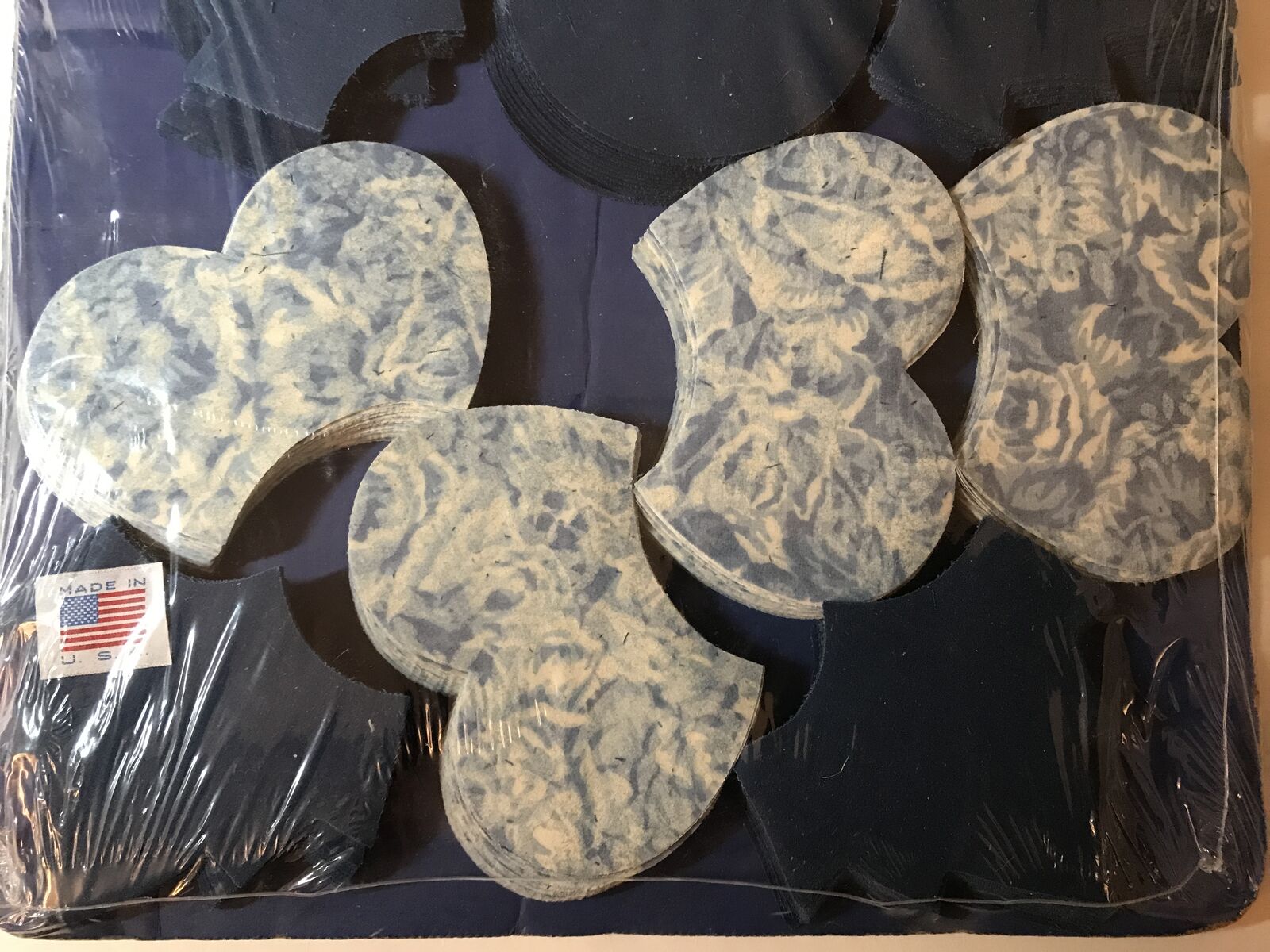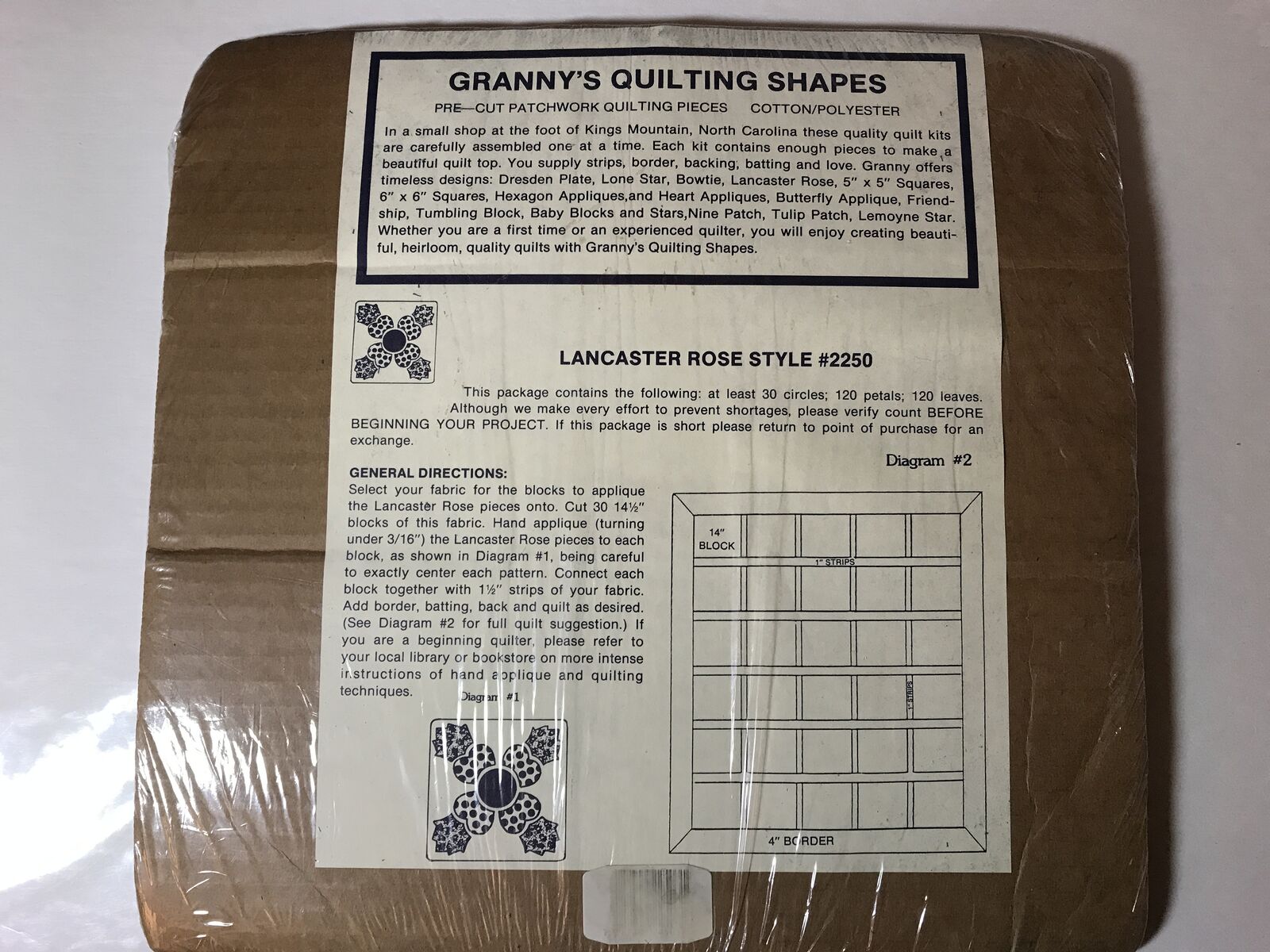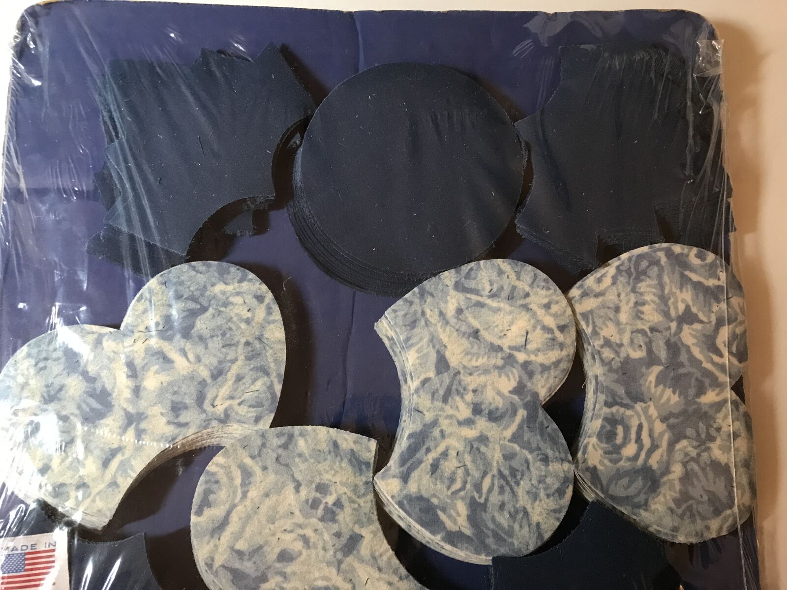 Granny’s Quilting Shapes 30 Circles , 120 Petal, 120 Leaves Precut Patchwork Quilting Pieces, Lancaster Rose Style #2250 Navy Blue, Light Blue and Cream colors. Never opened have kept stored.