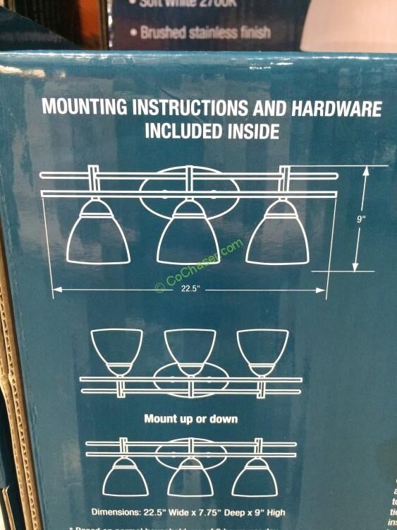 Feit Electric 3 Light Bath Vanity Integrated LED Lights uses only 24.5 watts, it will last over 45 years with no bulbs to replace.