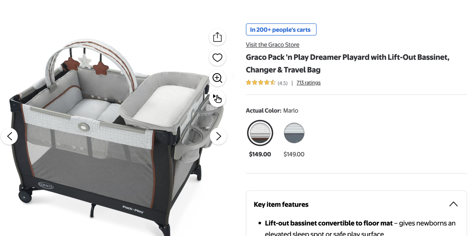 Lift-out bassinet convertible to floor mat – gives newborns an elevated sleep spot or safe play surface.