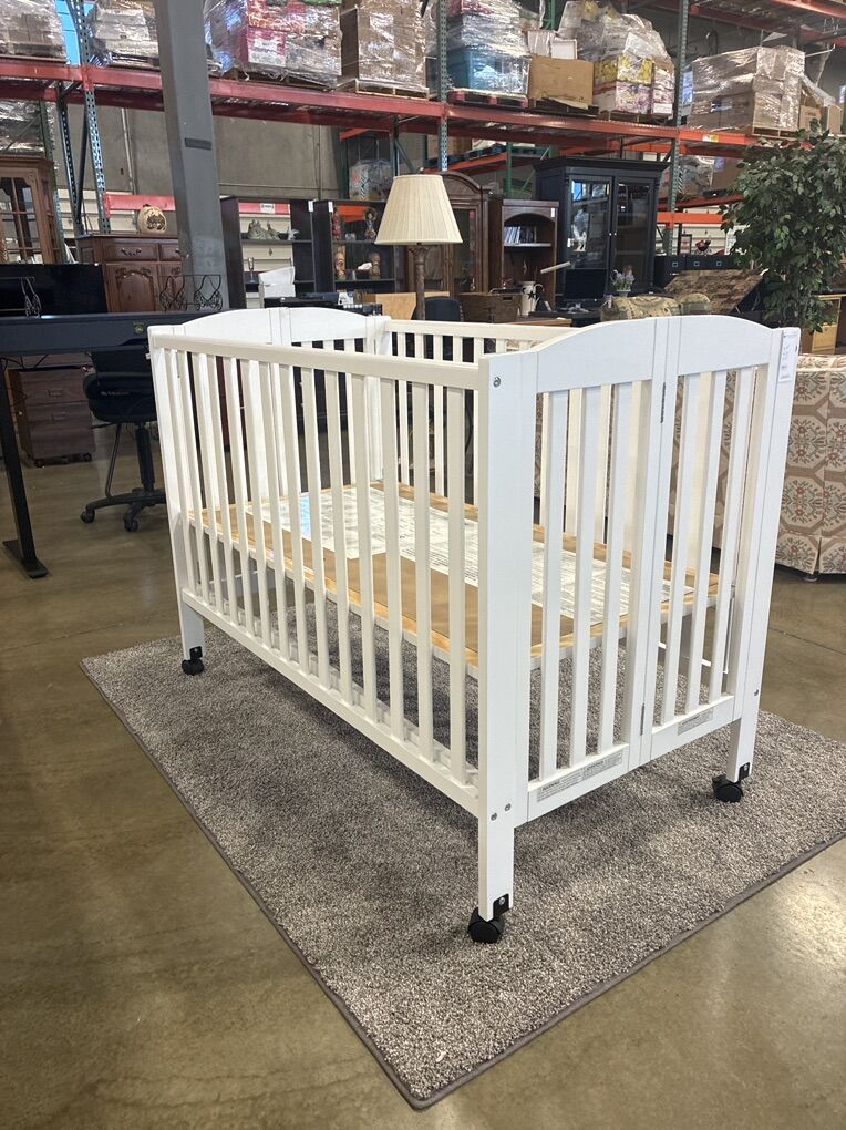 ApplePayThis is a like new rolling baby crib. There are a few scratches on one of the inside walls. I included a picture of it. These are the only damages. Here are the dimensions W: 34” D: 30” H: 41”