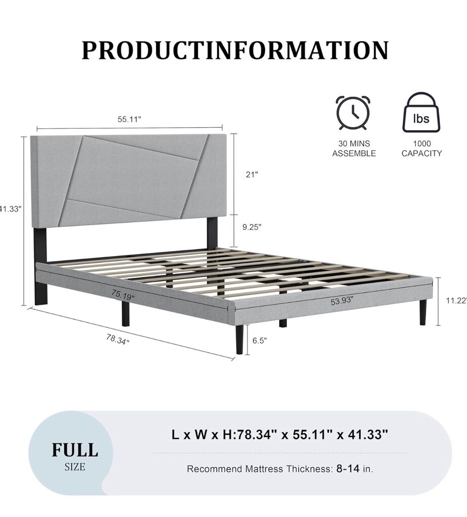 VenmoBrand New in the Box Full Size Bed Frame Platform with Velvet Upholstered Headboard, Geometric, Sturdy Frame and Wooden Slats, Noiseless, No Box Spring Required, Easy to Assemble, Pink