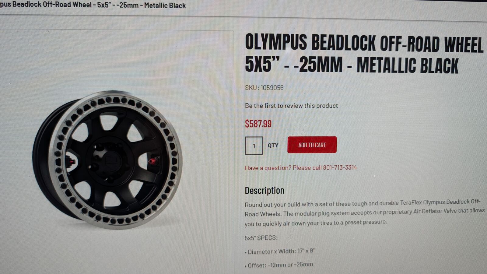 FEATURES & BENEFITS: • Cast from heat treated A356-T6 aluminum – Strong enough to handle 40” tires • Easy to clean finish – Dual-stage clear powder coat w/ UV inhibitors • Modular Plug System accepts Air Deflator, Schrader valve, or Plug • Compatible with factory TPMS sensor • Air Deflator Valve allows you to quickly air down your tires to a preset pressure • Releases up to 40x more air than Schrader valve for quick air down • O-ring seal ensures air blows contaminates away from air release orifices DELUXE WHEEL INCLUDES: Olympus Beadlock Off-Road Wheel, Center Cap fully encapsulated Schrader Valve Stem Housing & Cap, Air DeflatorValve.