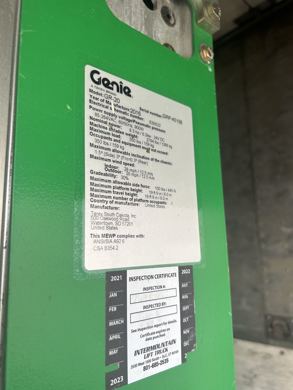 Good working lift! Max load 350 / Max lift 19ft 9in with 369hrs