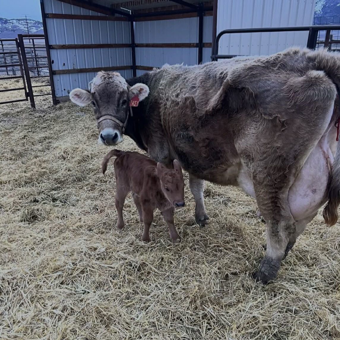 Been used as a family milk cow, good for hand or machine milking, halter broke, turned 8 in September. Bred back to a red angus due to calve end of July. Caught first cycle each time she’s been in with a bull. She is currently dry.