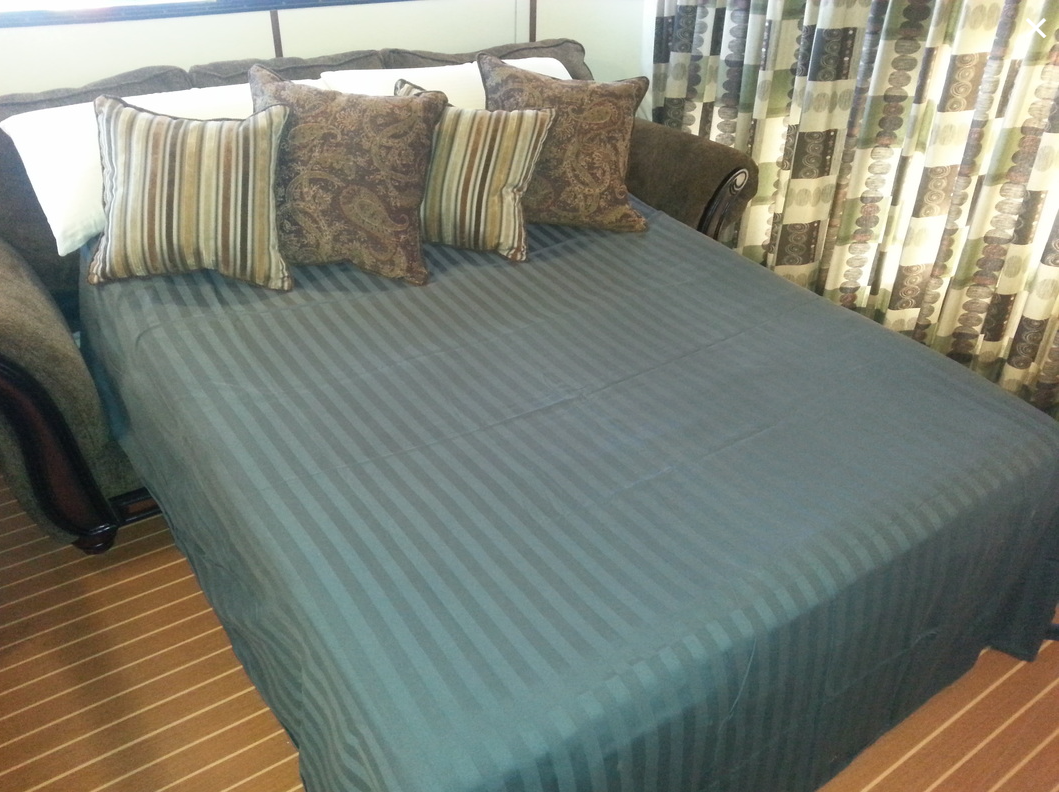 3 spacious staterooms with queen size beds and a pull out sleeper couch.