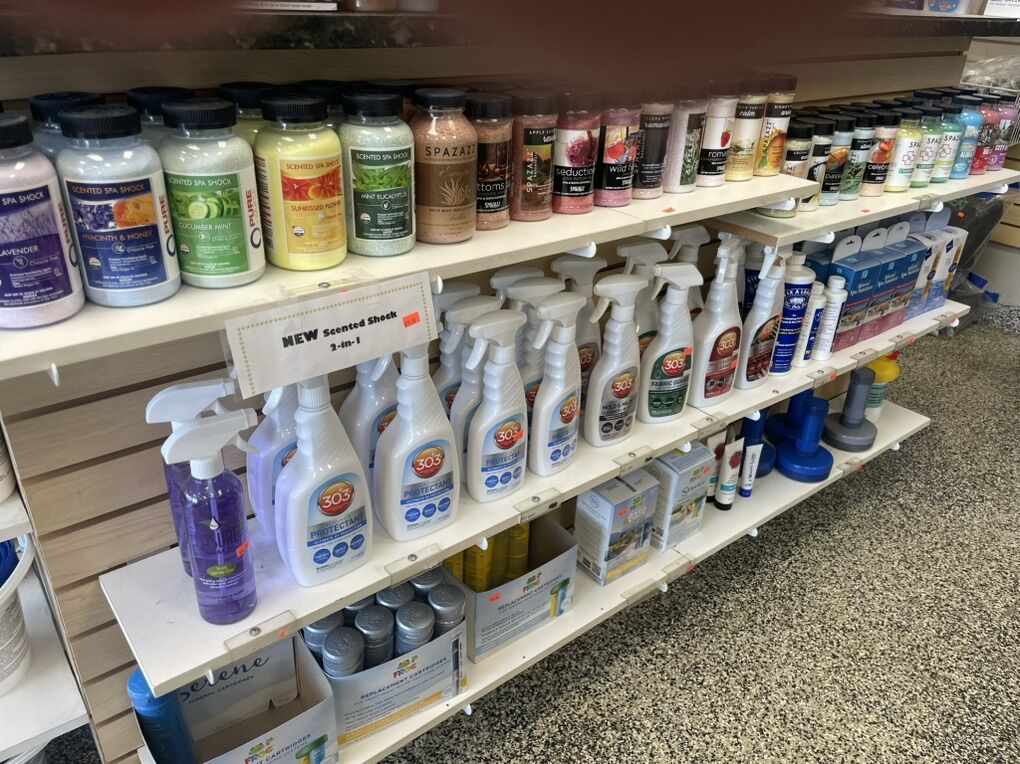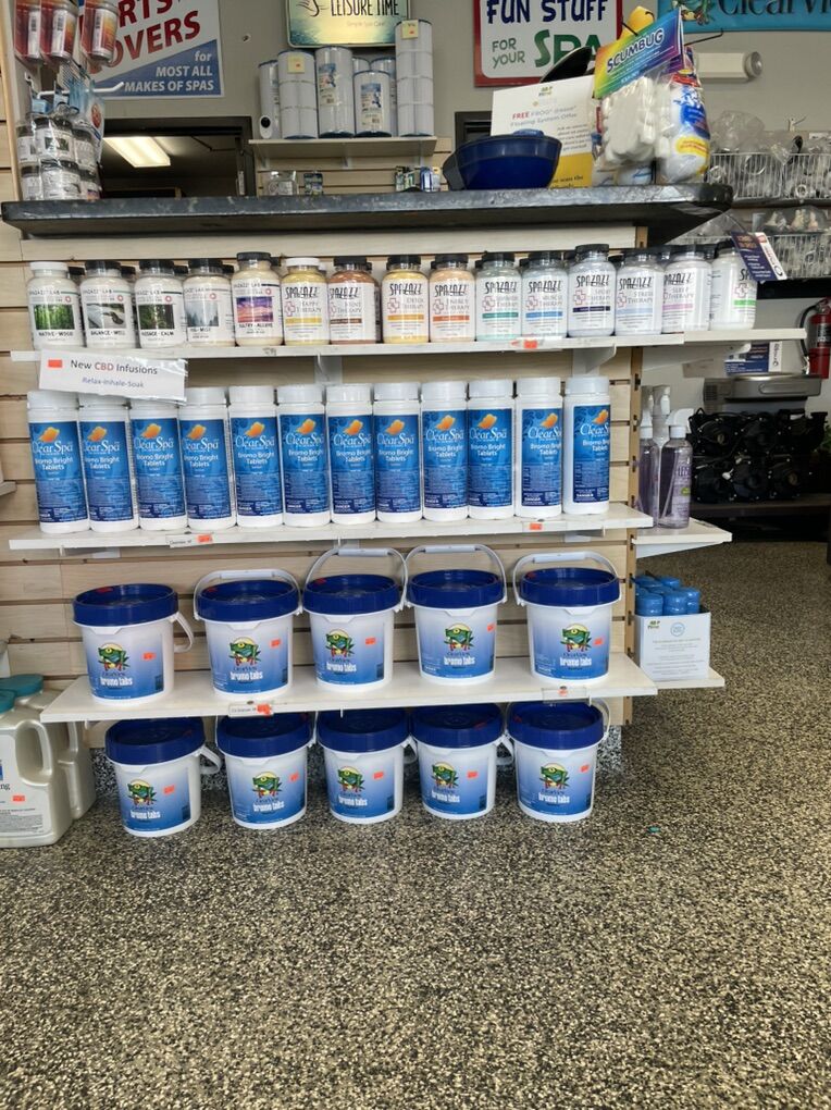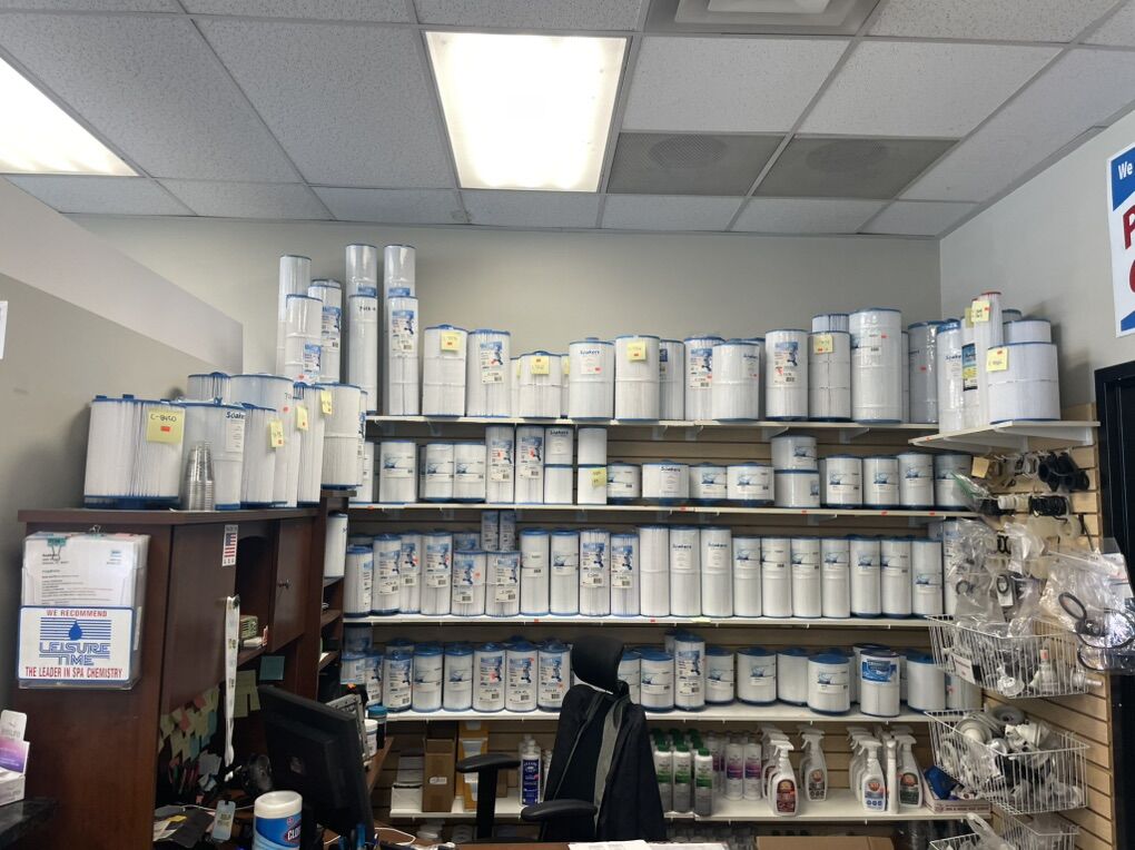 We have everything you need and the knowledge to help you with your chemicals to keep your water healthy and clean! We also try to keep every filter in stock...there are A LOT. Bring your old filter in to match it up if you're unsure. We also stock covers.