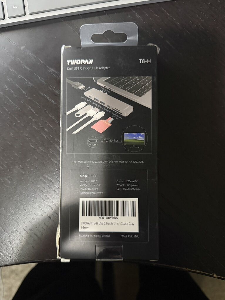 VenmoTwopan Dual USB-C 7 port hub adapter for MacBook pro and MacBook Air. Message with questions. Will not give any codes etc. Cash or Venmo accepted.