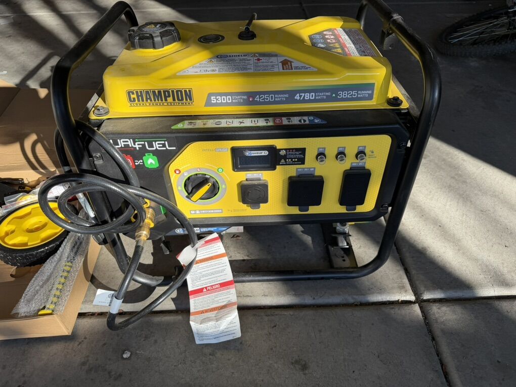 ApplePayChampion 5300/4250-Watt Gasoline and Propane Powered Dual Fuel Portable Generator with CO Shield.