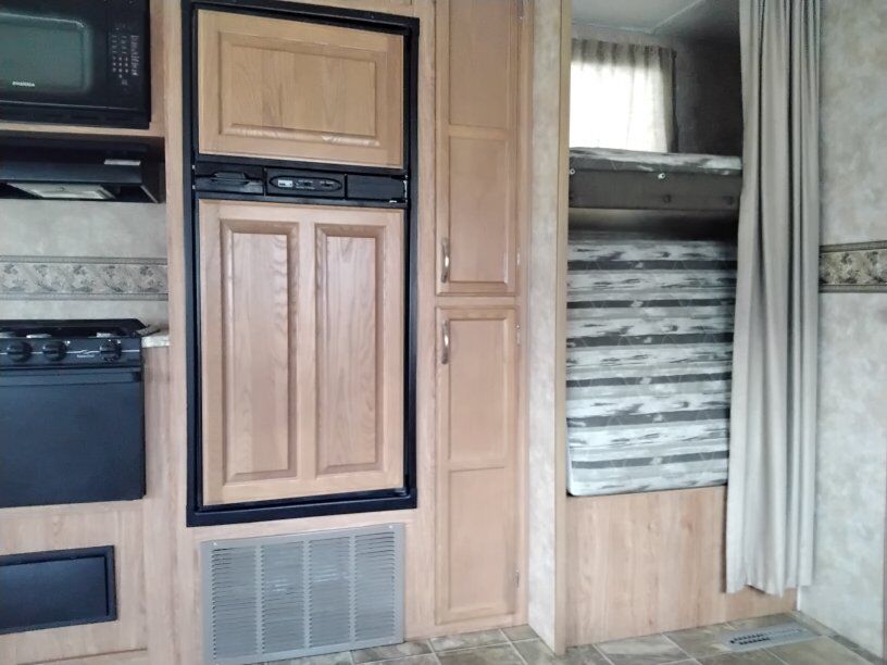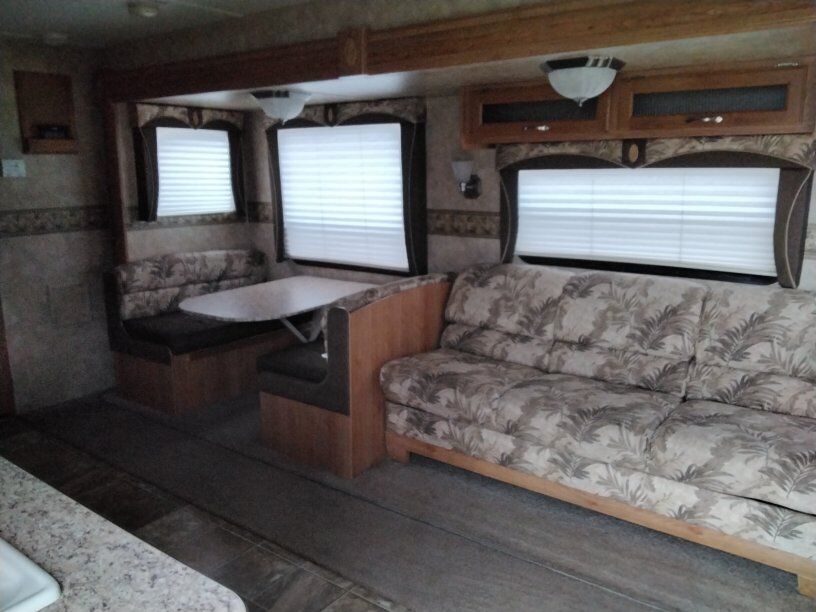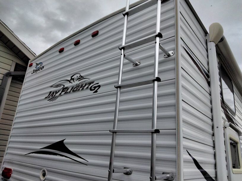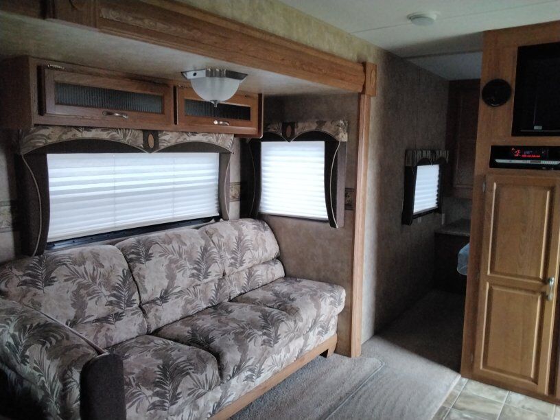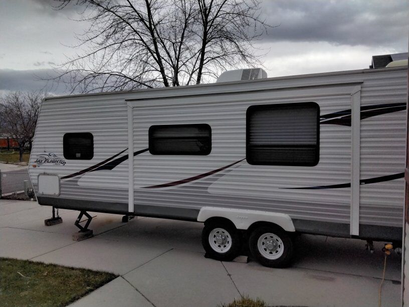 $9500 OBO. come take a look and make me a offer! This has been a great trailer and is hard for us to sale but we are now in a new stage of life. Used but not abused, sleeps up to 9 max. Tires are only a year old and everything works. Furniture is in excellent shape, exterior has signs of the sun fading the graphics. Roof is in good shape and no leaks. Non smokers and cleaned meticulously after every trip ( wife is a clean freak) Queen mattress, A/C, EZ lube axle bearings (yearly maintained) 81 inch ceiling, dry weight 5215lbs, gvwr 7500lbs, fresh water 59 gallons, gray and black tanks both hold 32.5 gallons each, 2 propane tanks 9.4 gallons total, 18 ft electric awning, upgraded interior lights to LED, 6 gallon water heater, stove/oven combo, forced air furnace, outdoor shower, quick connect to propane for outdoor grill/ bbq, matching spare tire, scissor stabilizing jacks, manual tongue jack, 12v aftermarket stereo and speakers, 32 inch tv, 120v dvd/stereo combo with interior speakers, electric brakes. Pack and play door (game changer for storage). 200 watts of solar panels with upgraded controller. Happy to answer any questions. Make an offer. Jay at One 801 five 0 five 1 two 4 nine.