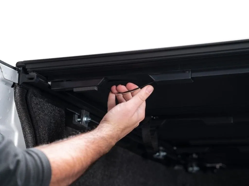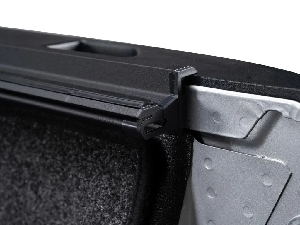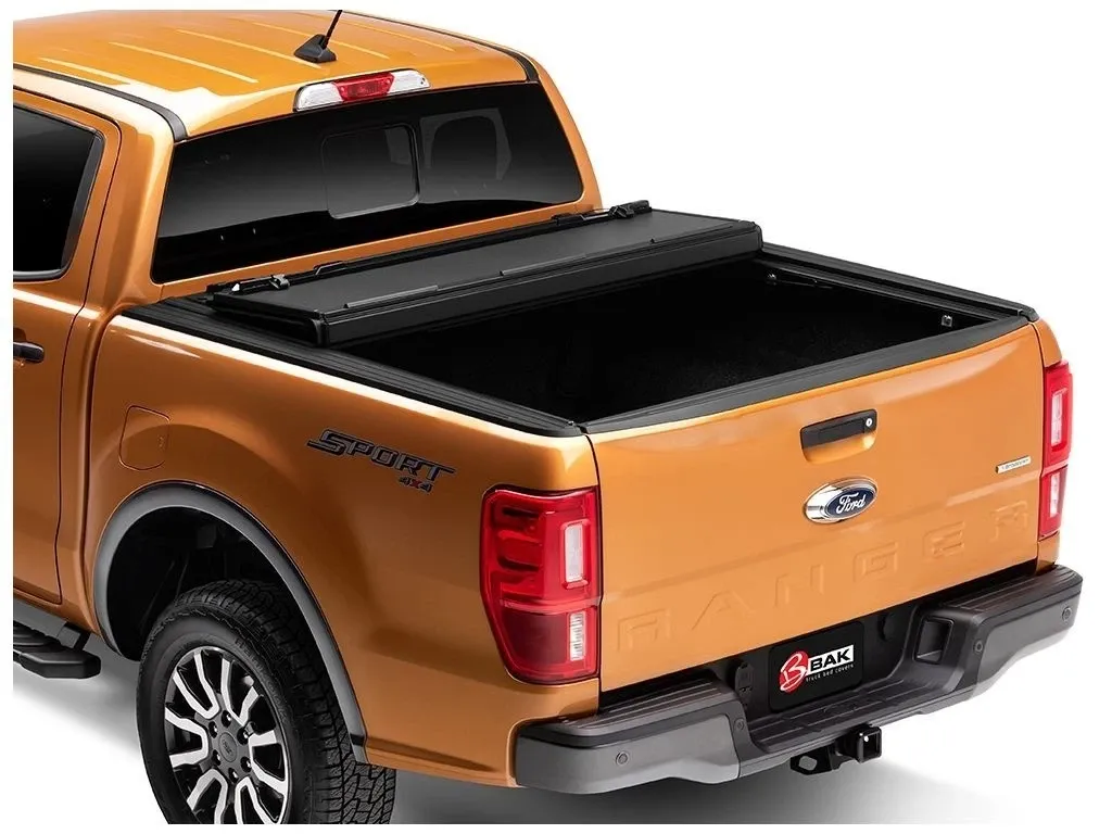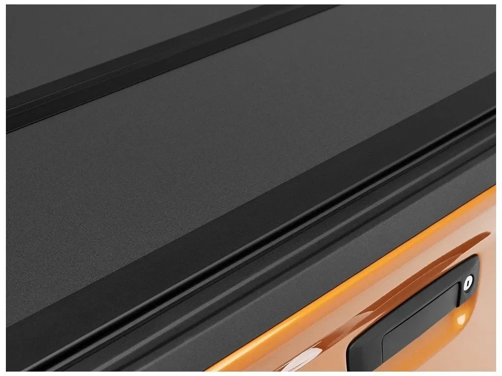 Specifications Cover Type: Hard Tonneau Type: Folding Number of Folds: 3 Mounting Type: Inside of Bed Rails Security: Locking Toolbox Compatible: Yes (BAKBox 2 Utility Storage Box Only) Toolbox Included: No Design: Low-Profile Compatible with Ladder Rack: No Compatible with Headache Rack: No Compatible with Bed Caps: Yes Capacity: 400 lb Cover Material: Black Matte Textured Frame Material: Aluminum Finish: Matte Black