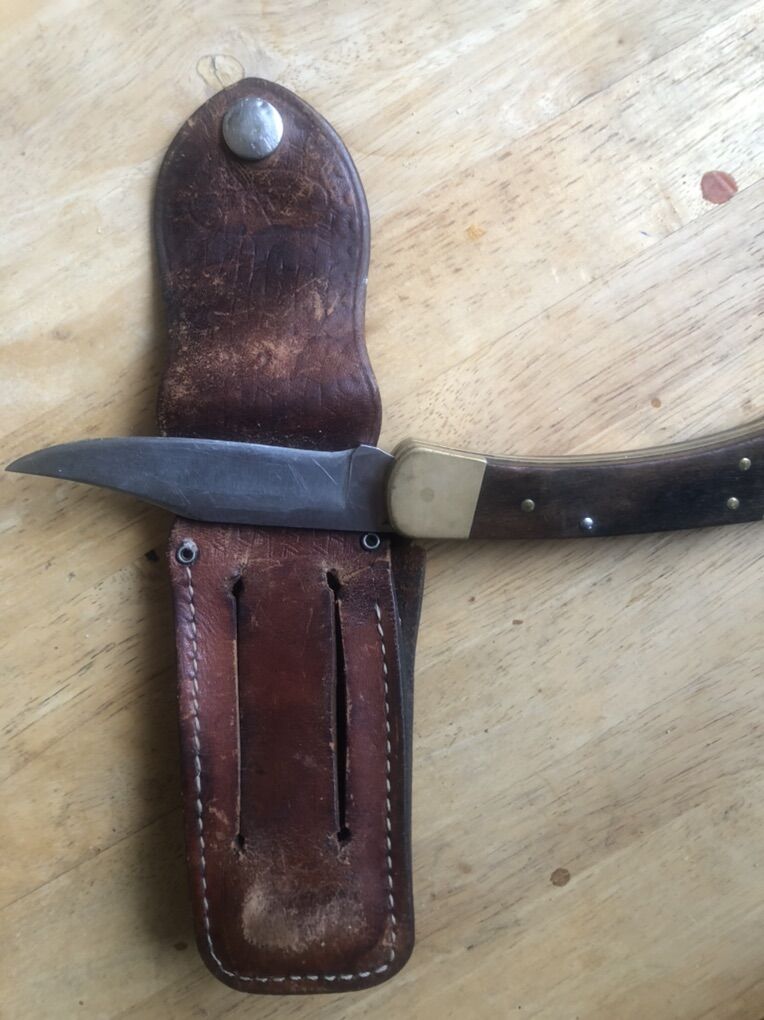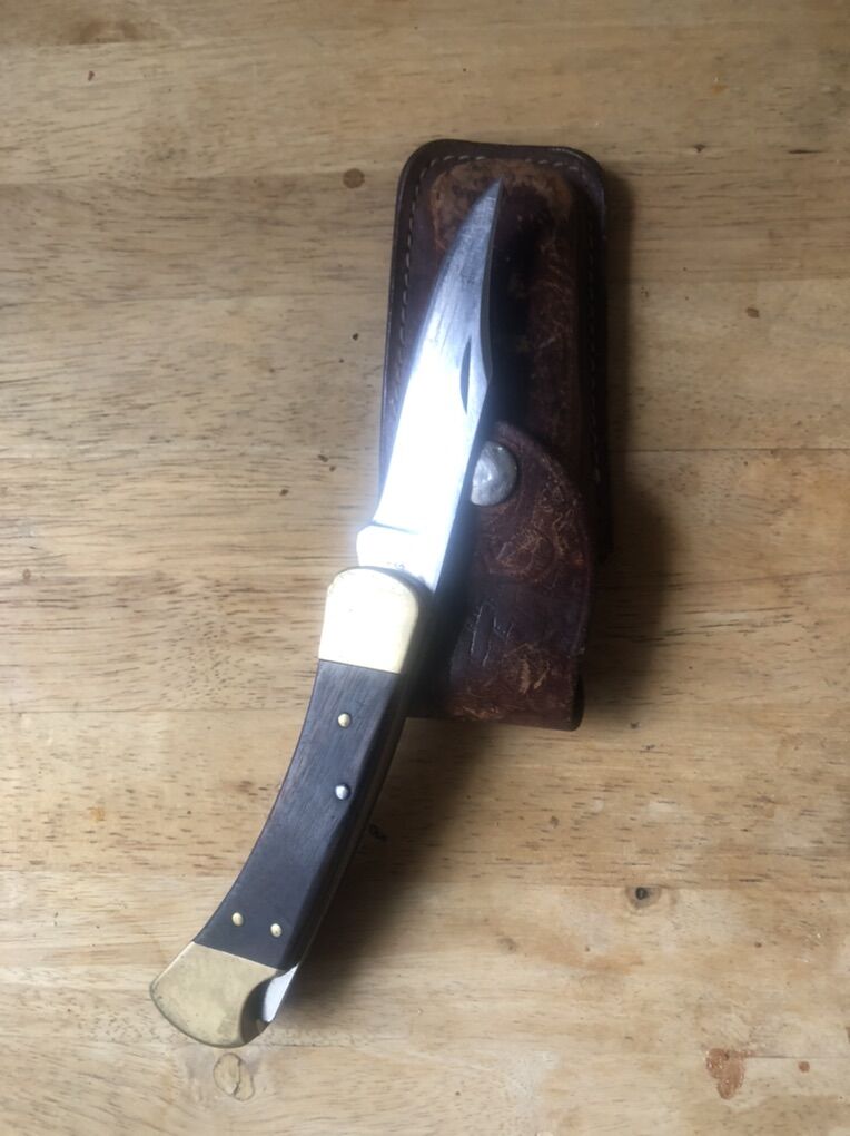 VenmoVintage Four Dot Buck 110 Locking Blade with original sheath cir 1974-1980.