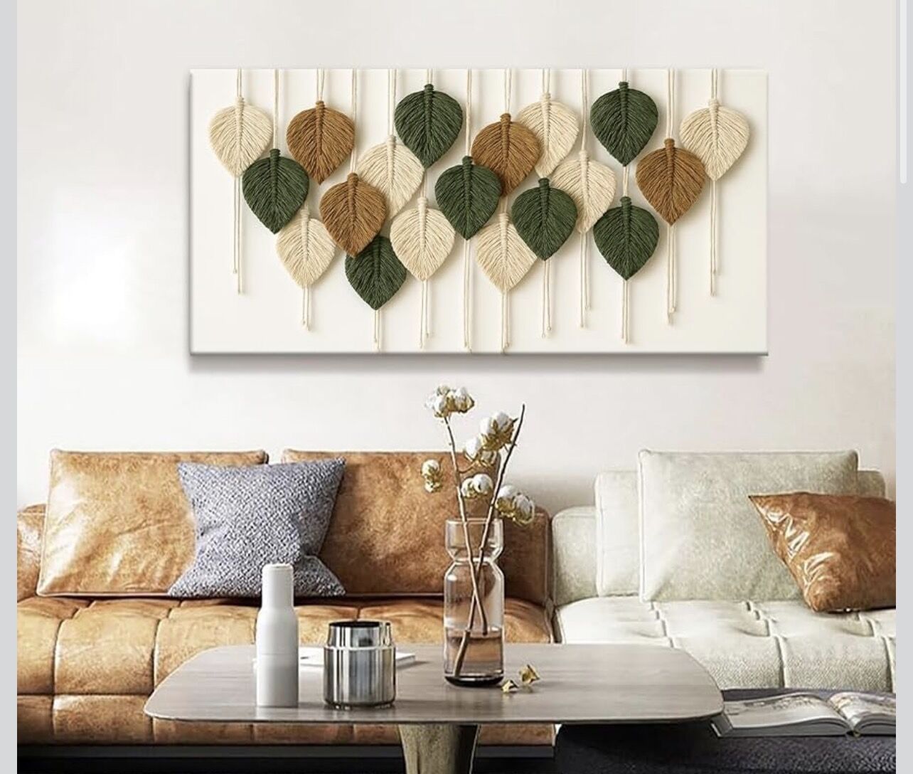 Brighten up any room with this large boho wall art set featuring vibrant multicolor leaves and feathers. Perfect for the living room, bedroom, kitchen, or apartment, these modern canvas prints add a stylish, artistic touch to your space. Comes in two sizes: 29" W x 58" L and 24" W x 48" L.