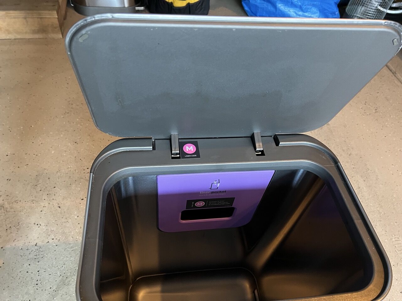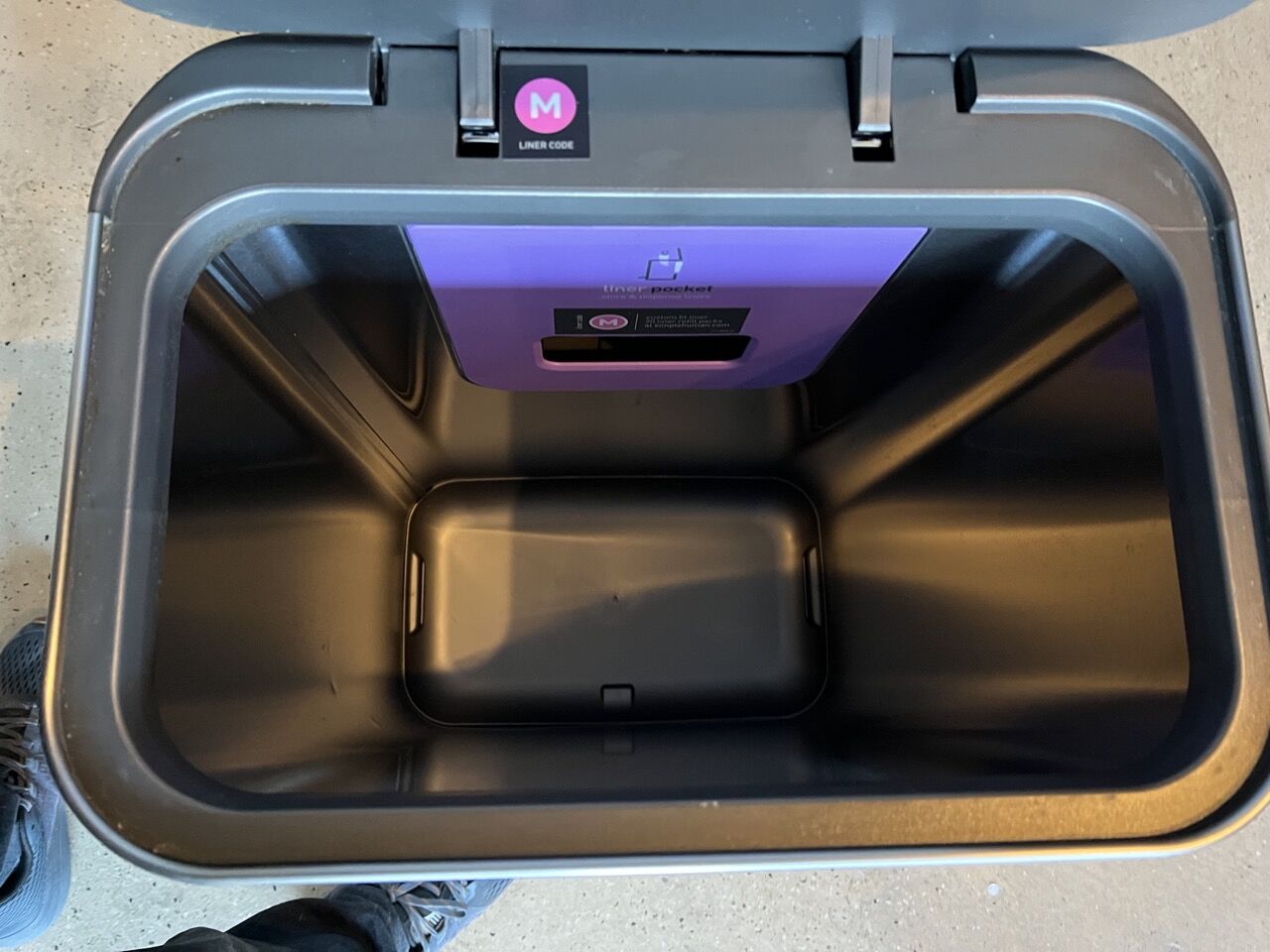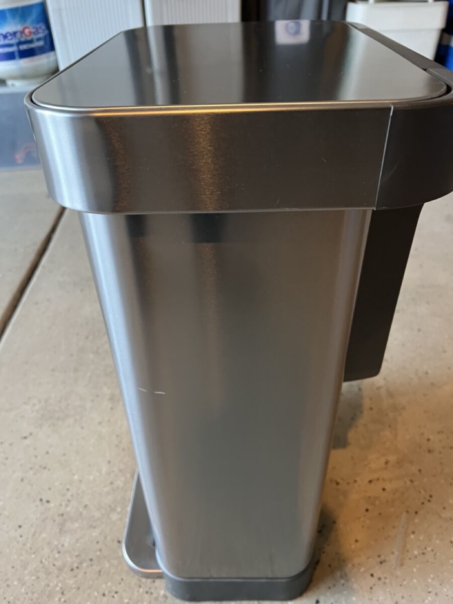 VenmoAll Stainless Steel including the lid, Good condition with no dents. Built-in liner storage keeps extra bags neatly tucked inside. There are a some light white scuff marks on the exterior that may be removable with cleaning, but they don’t affect function. Opens and closes smoothly and works as it should.
