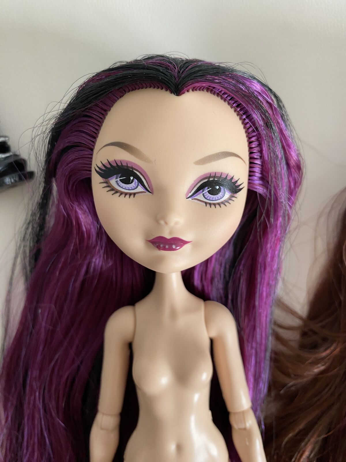 Five EAH dolls in good to poor condition. Hunter Hunstsman has a small bald patch on his head. Raven Queen is in good condition and comes with part of her signature outfit. Briar Beauty is missing her hands. Holly O'Hair has some sharpie-like marks on her torso. Darling Charming has some marks on her face and body, and he hair has sharpie in it
