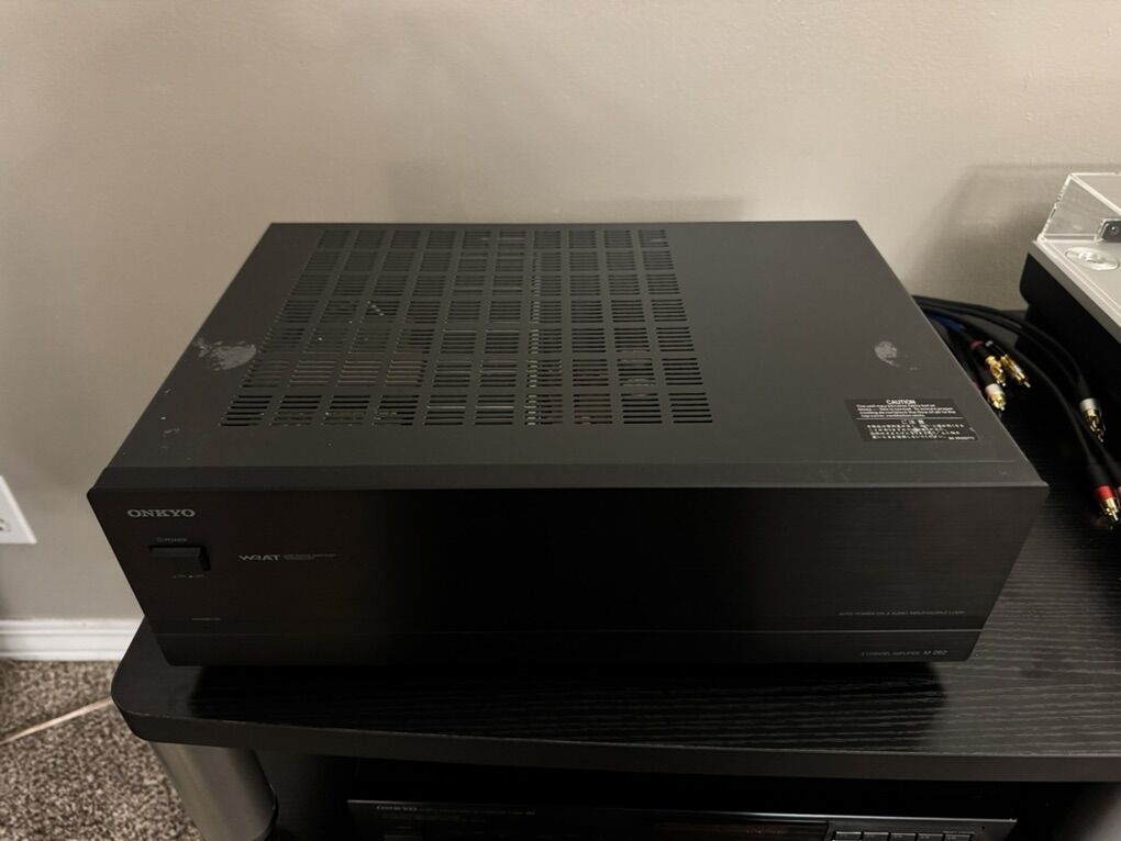 VenmoI have for sale an Onkyo M-282 power amp. 100 Watts per channel into 8 ohms. 12V trigger, gain control on back. Unit is in OK cosmetic shape, but shows signs of previous use. Everything is in working order and sounds great.