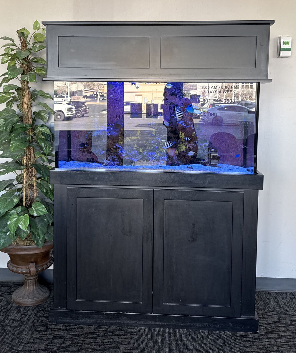 GooglePayWe have five large aquarium setups available and we’re looking to get rid of them. These are display-style tanks that come with the wood cabinets/stands and live fish included.