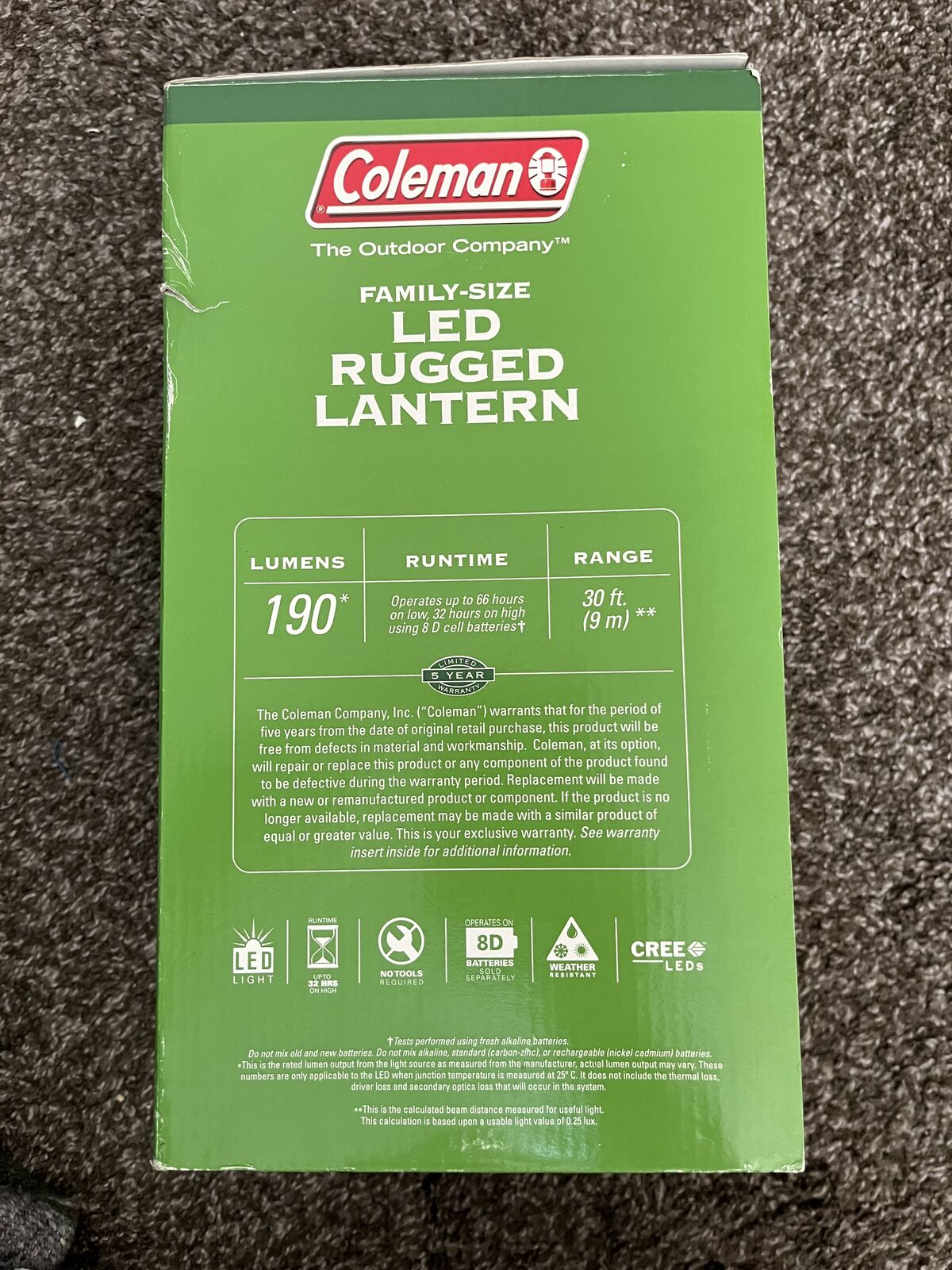 VenmoUsed Coleman lantern. Taken it camping a few times and it's great. 30ft. range. We would just set it on a table at our campsite and it would light the whole area enough to pitch tents, play cards, eat food, etc... Don't have a lot of camping gear anymore so just getting rid of what's left.