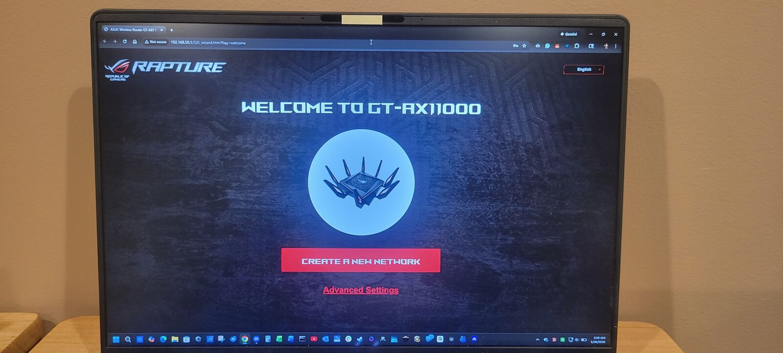 The screenshot of the landing page shows it has been factory reset and is working.