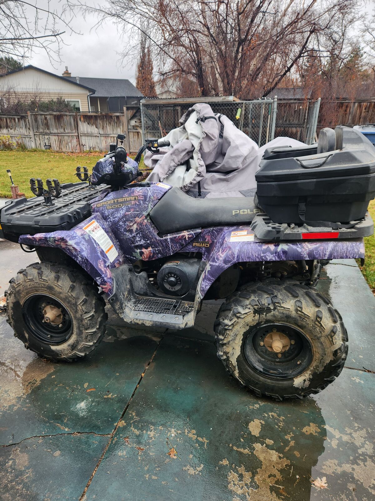 1804 miles, new winch, has hand warmers, new fuel pump, new brake lines, always under tarp but still faded. Good solid bike 3800/ obo. David. 801 368 2368