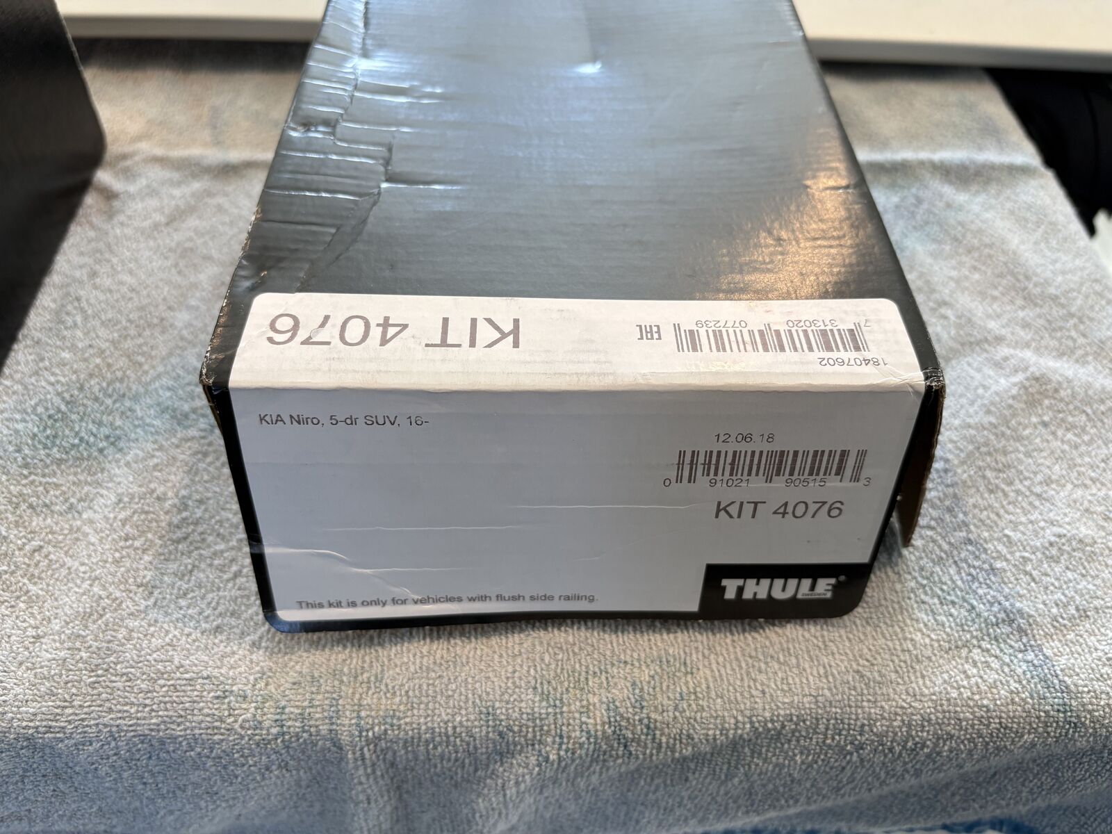 • Kia Niro Fit Kit — Thule 4076 (vehicle-specific adapters) — This kit (4076) is the correct Thule fit kit for 2017–2020 Kia Niro models with flush roof rails (hybrid/PHEV) — this kit is no longer available from Thule!