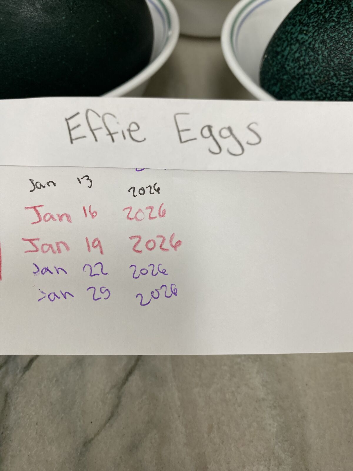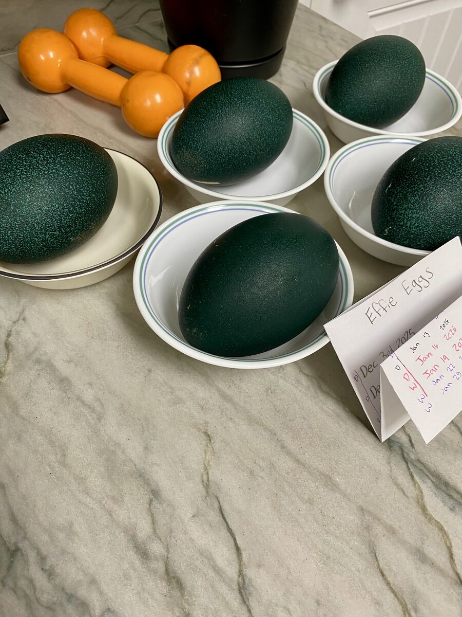 VenmoFresh Emu eggs. The dates they were laid are listed in one of the photos. They are fertilized but put in the refridg immediately after they were laid. They have a delicious and rich flavor.