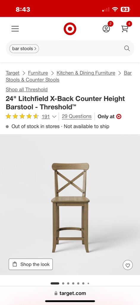 Venmo2 Litchfield X-Back Counter Height Barstools from Target in Driftwood color. Only a little over a year old, very gently used in excellent condition. Please see photos for more details and measurements. Originally purchased for $160 each. Asking $125 for both. Please message for more info.
