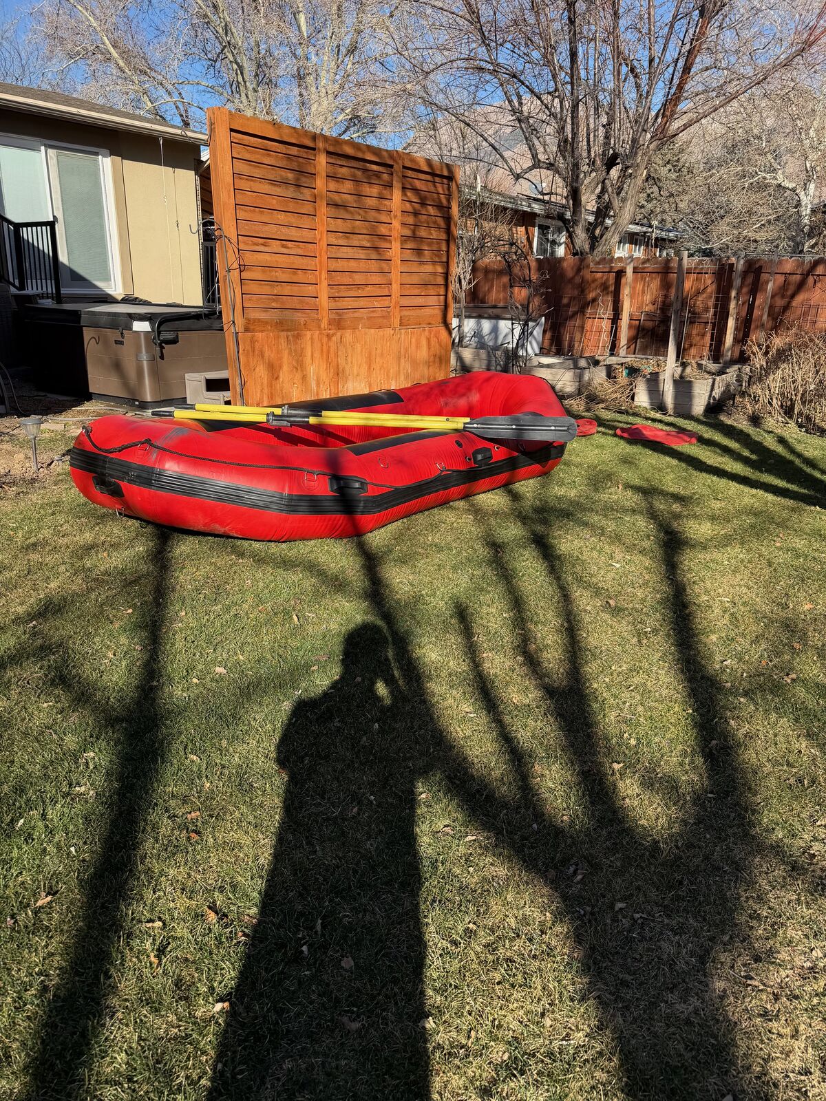 Venmo14' inflatable self bailing raft with 2 ea 8' Carlisle Oars with Oar rights and removable Sawyer blades and 4 paddles. $1500.00