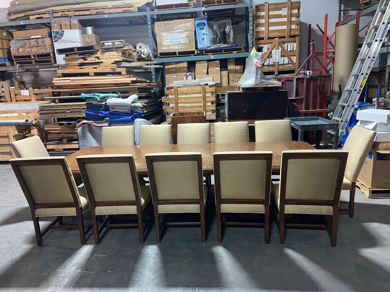 Pick up in Las Vegas. Wood conference table with 12 chairs. 168” x 53” with extensions
