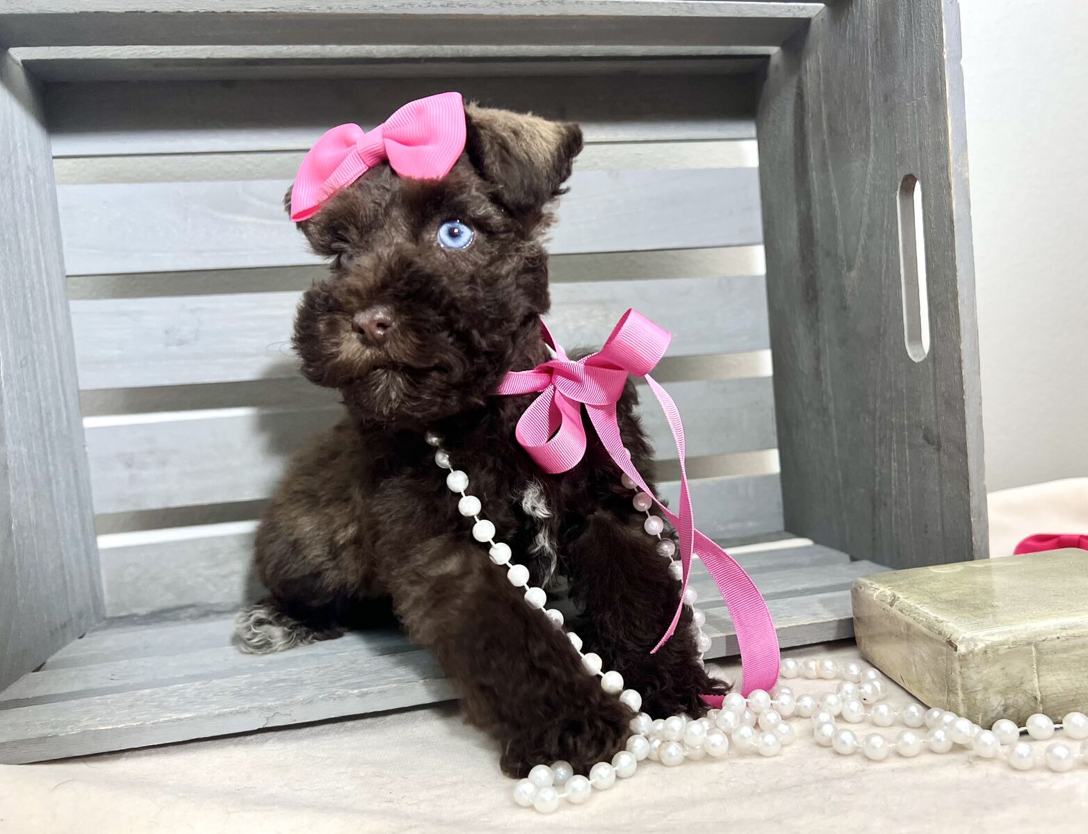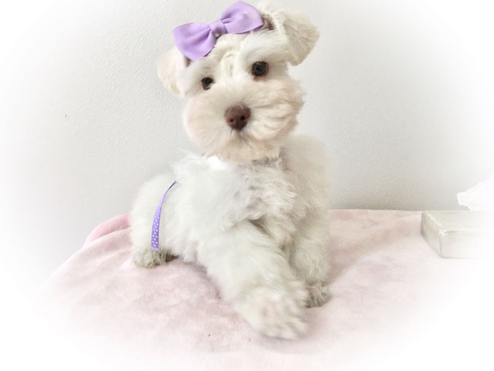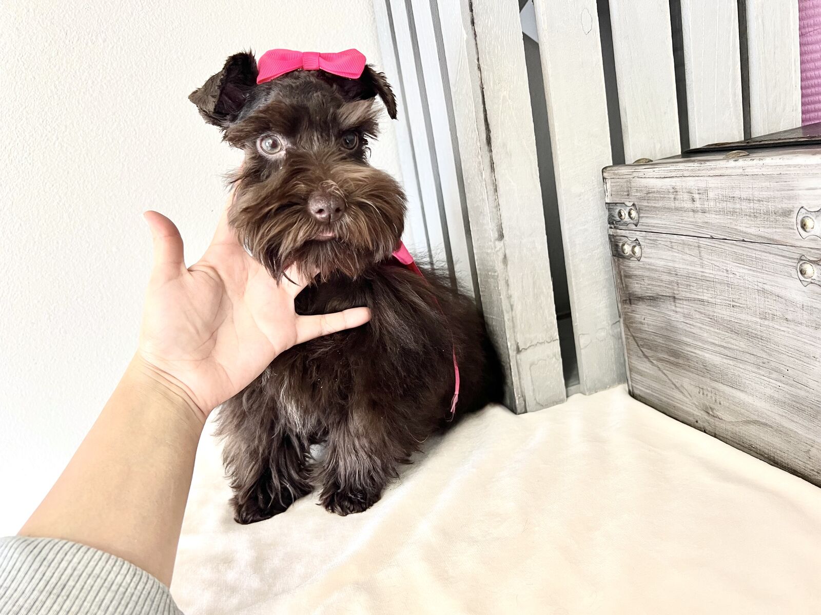 Frosty's dad is a 4lbs megacoated chocolate parti teacup schnauzer ... so Frosty does tend to throw teacup-toy puppies. Some of the puppies sold to family have been as small as 5-6lbs.