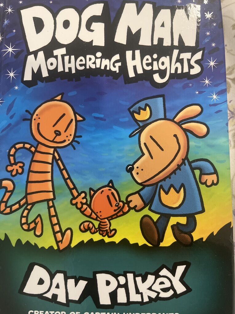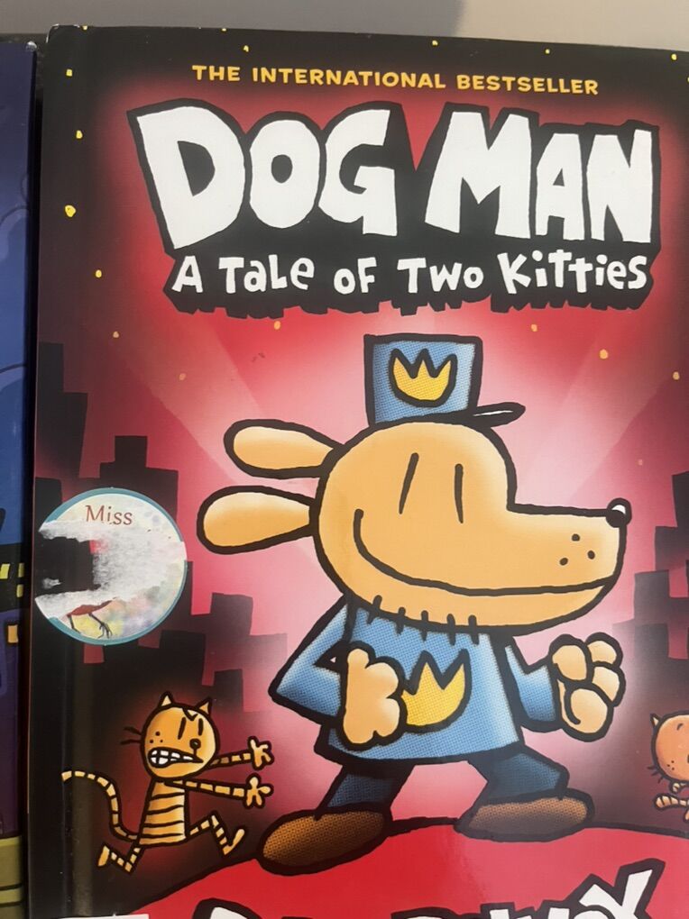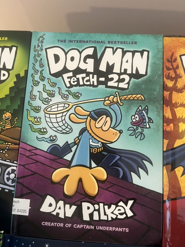 Dog Man Dog Man: Unleashed Dog Man: A Tale of Two Kitties Dog Man: Lord of the Fleas Dog Man and Cat Kid Dog Man: Brawl of the Wild Dog Man: For Whom the Ball Rolls Dog Man: Fetch-22 Dog Man: Grime and Punishment (often miscalled “Crime and Punishment”) Dog Man: The Scarlet Shedder Dog Man: Mothering Heights