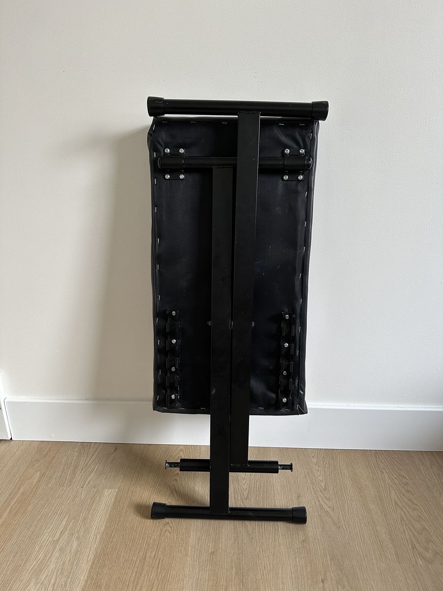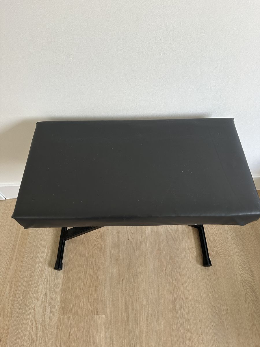 VenmoDeluxe keyboard bench provides the adjustable, sturdy and padded seat you need for hours of comfortable play. Its innovative X-style folding frame allows you to easily adjust the height from 21.25 to 25.75 to suit your ideal playing position and keyboard stand. The heavy padding relieves pressure on your back and legs, letting you focus on your performance. Non-slip rubber foot stabilizers keep the bench firmly in place on any floor surface. When done, the frame folds flat for compact storage and transport between gigs.