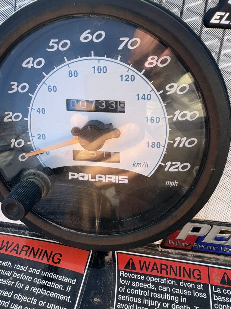 Excellent condition, just tuned up with fuel lines and battery being replaced. Fires up easy with electric and pull start. Has reverse. Heated grips for driver and passenger with additional wind covers for passenger. Seat is in excellent condition. Just over 733 miles on this Cadillac.