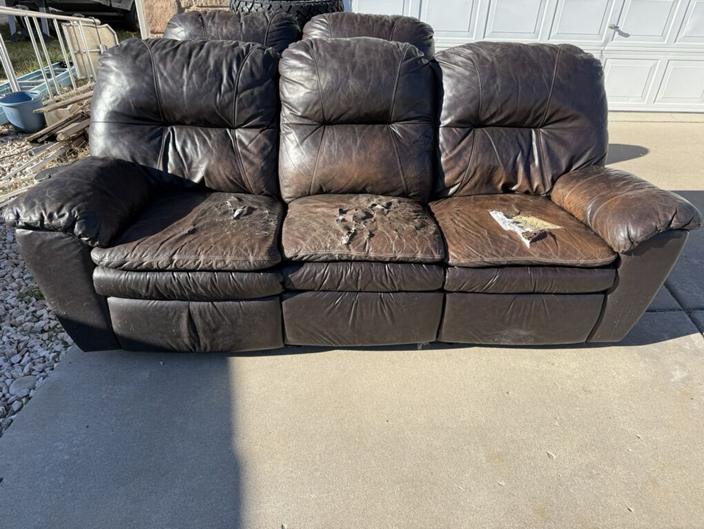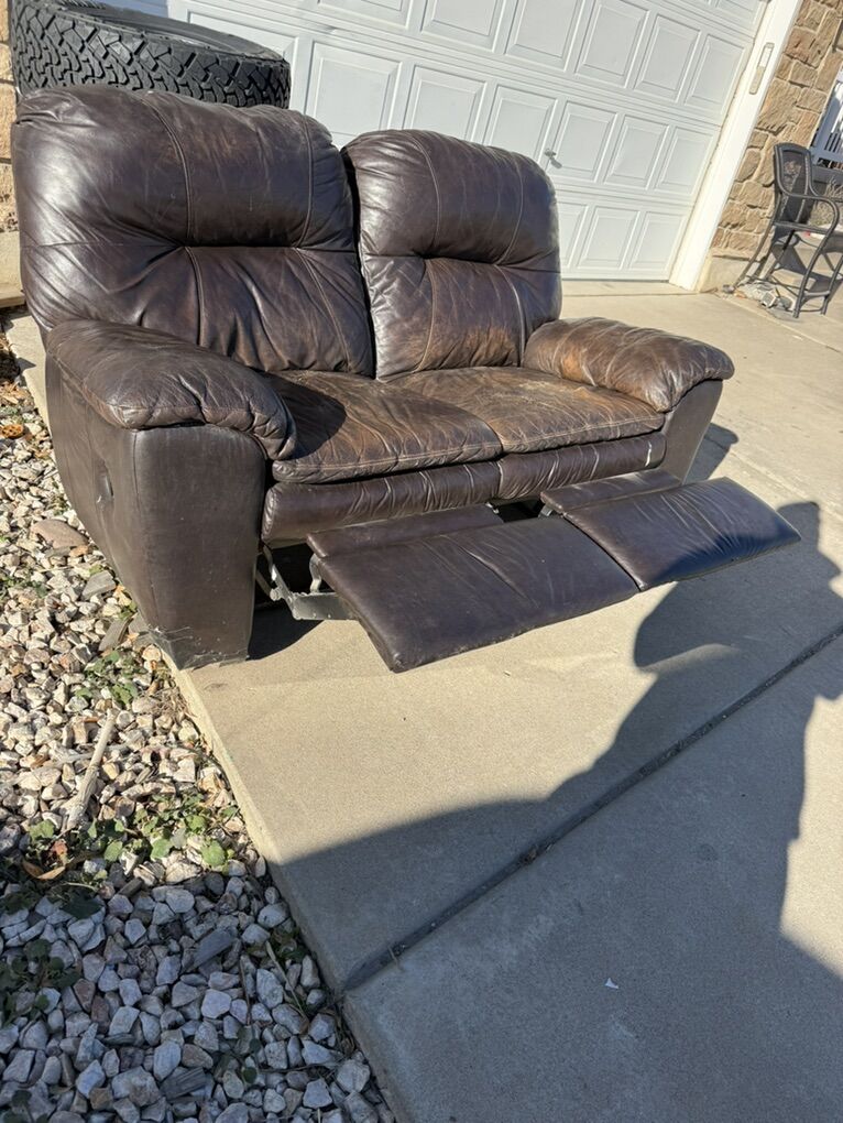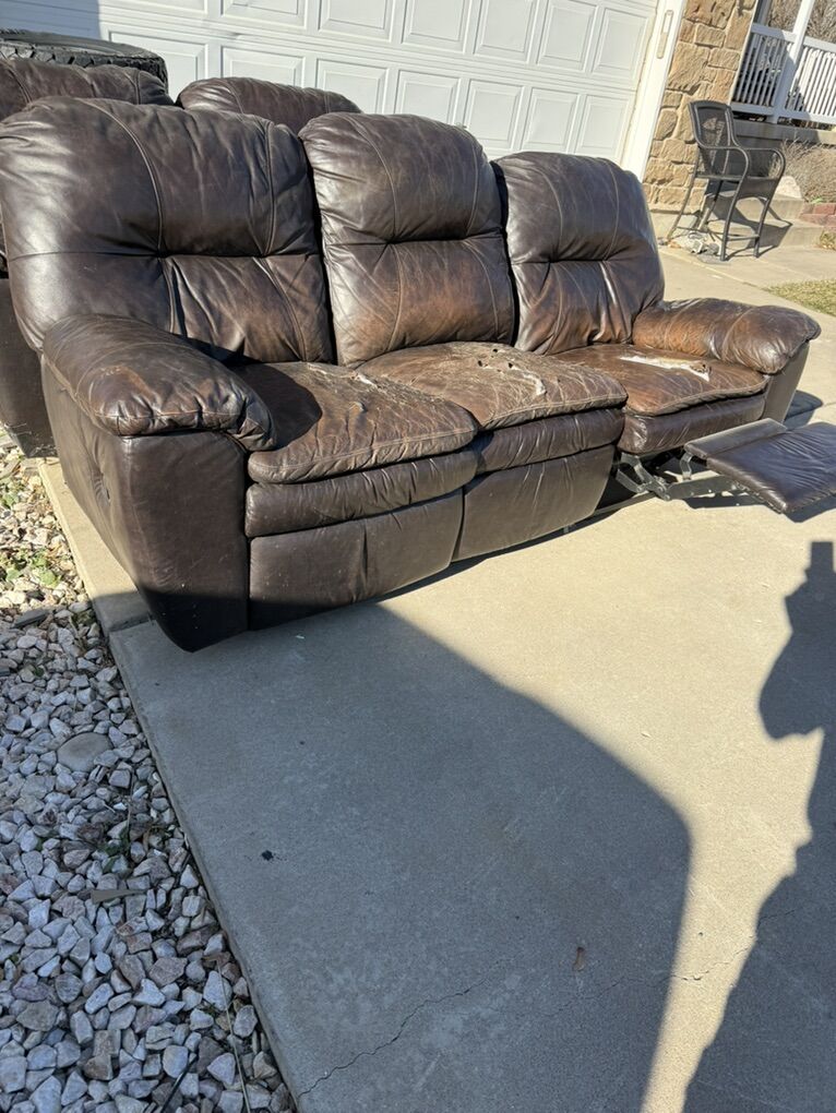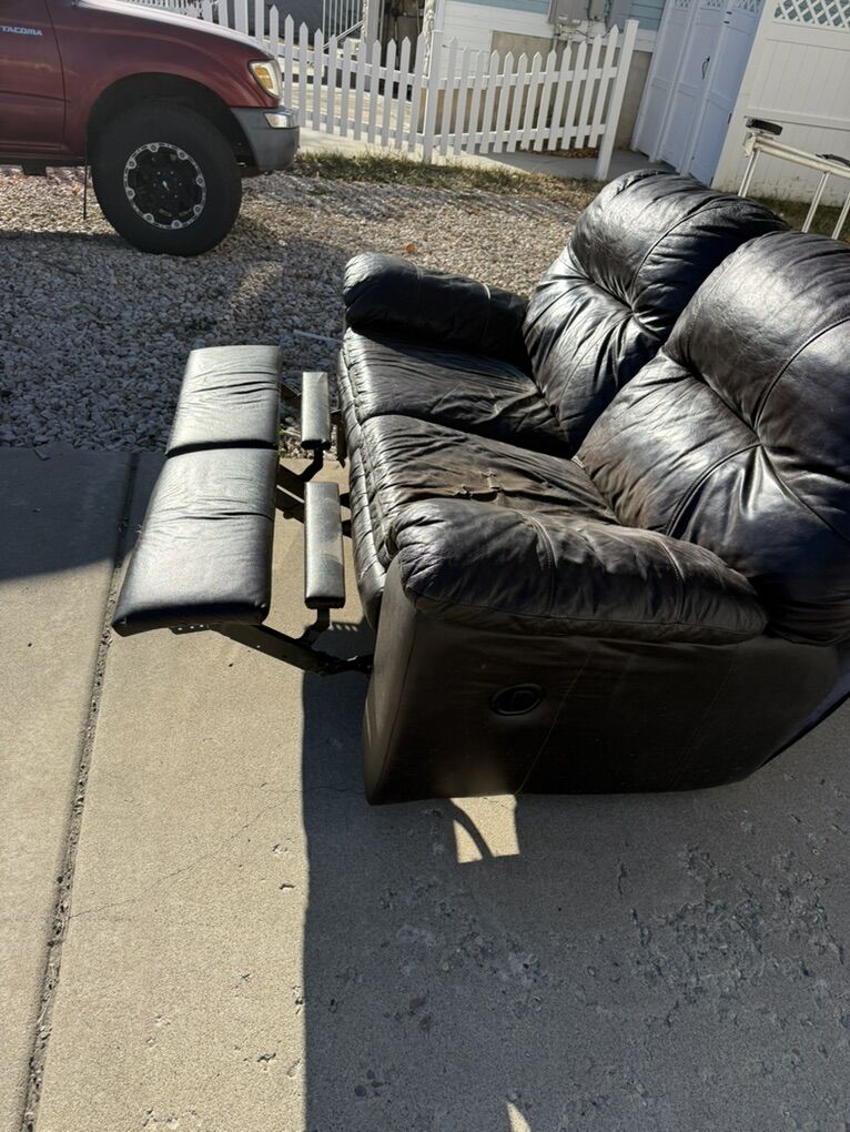 FREE. Leather Sofa And love Seat with Recliners FREE . Ready for immediate pick up These are used and look it.