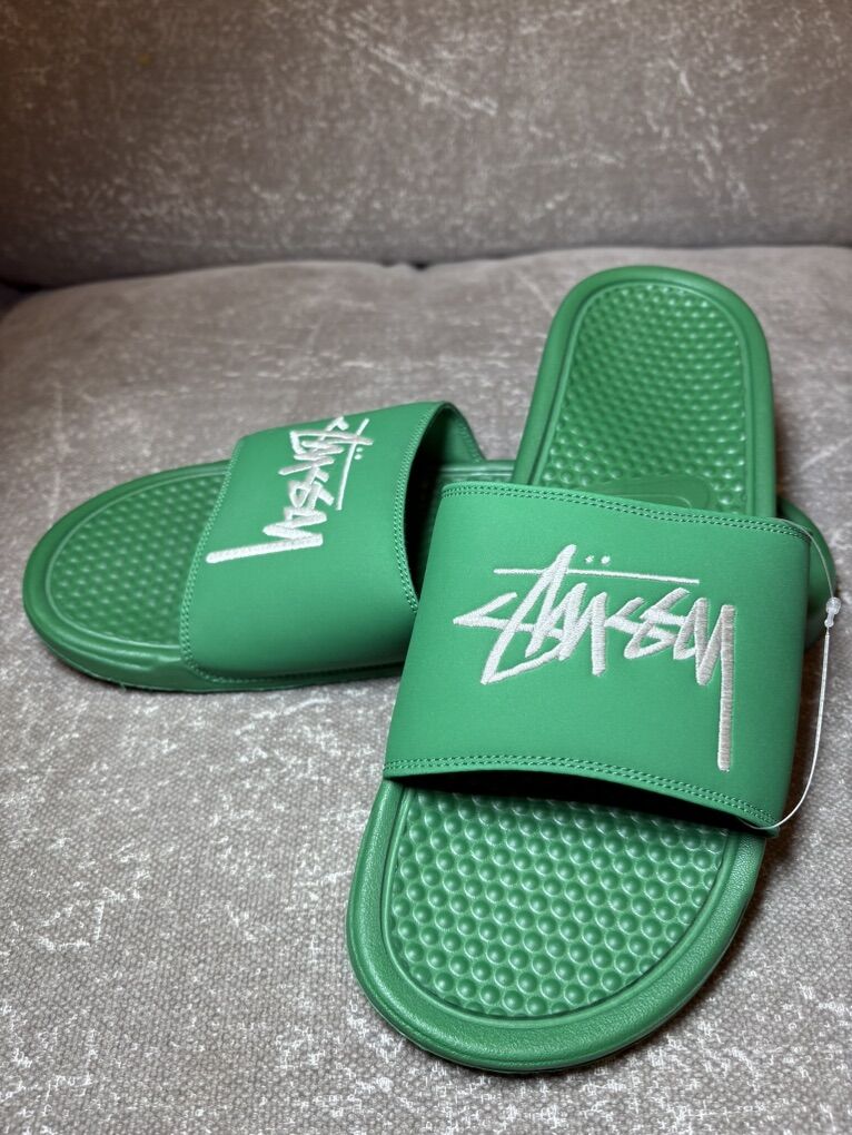 Benassi x Stüssy Nike Slides Embroidered logo Brand New Collect shoe releases and these have been tucked in the closet Mens sz 12