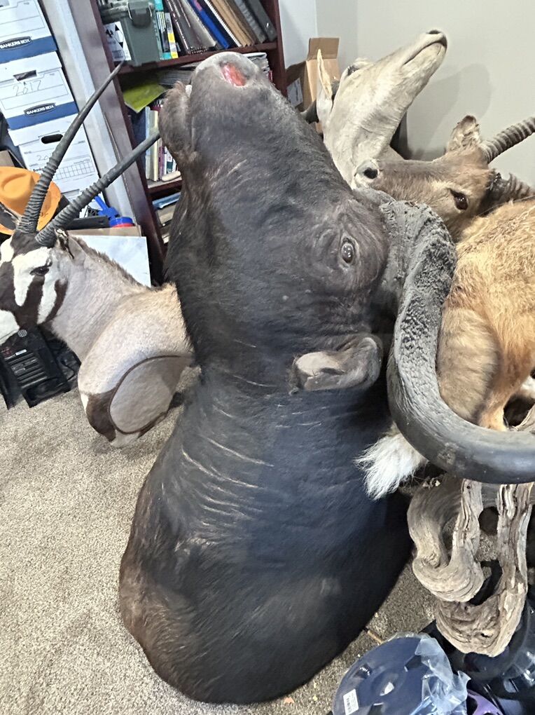 New condition, huge mount that we inherited from my father-in-law. The mount is only about 8years old -47” deep -base 28” -widest part of horns is about 38” $4000 or best offer. Message for more details