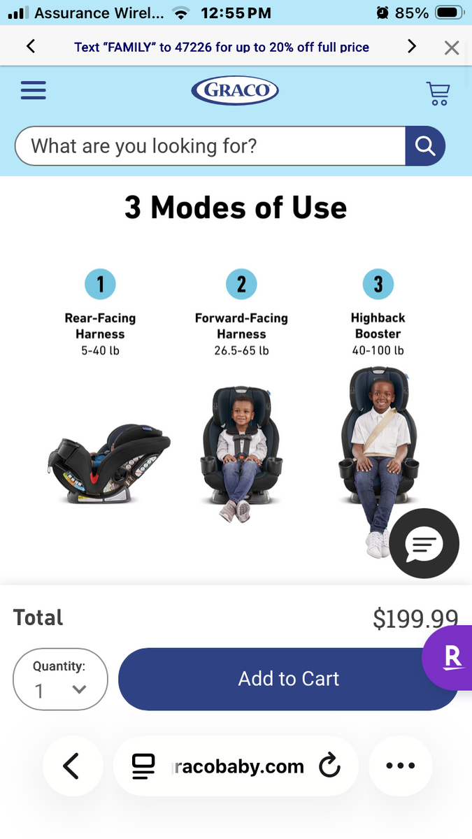ApplePayBrand new in the box The Graco TriRide 3-in-1 Car Seat helps to keep your little one safe from baby to big kid, through 3 modes of use: rear-facing harness (5-40 lb), forward-facing harness (26.5-65 lb), and highback booster (40-100 lb). The No-Rethread Simply Safe Adjust™ Harness System allows you to adjust the height of the headrest and harness in one motion, helping to save you time and ensure your child is properly secured. Choose the perfect headrest height from 10 positions and adjust the seat to 6 recline positions for a better installation. The car seat is LATCH-equipped for easy installation.