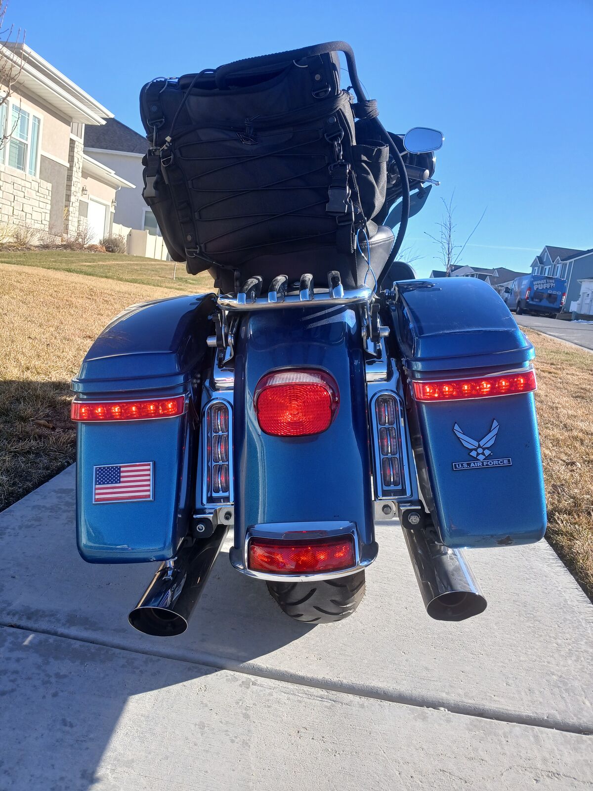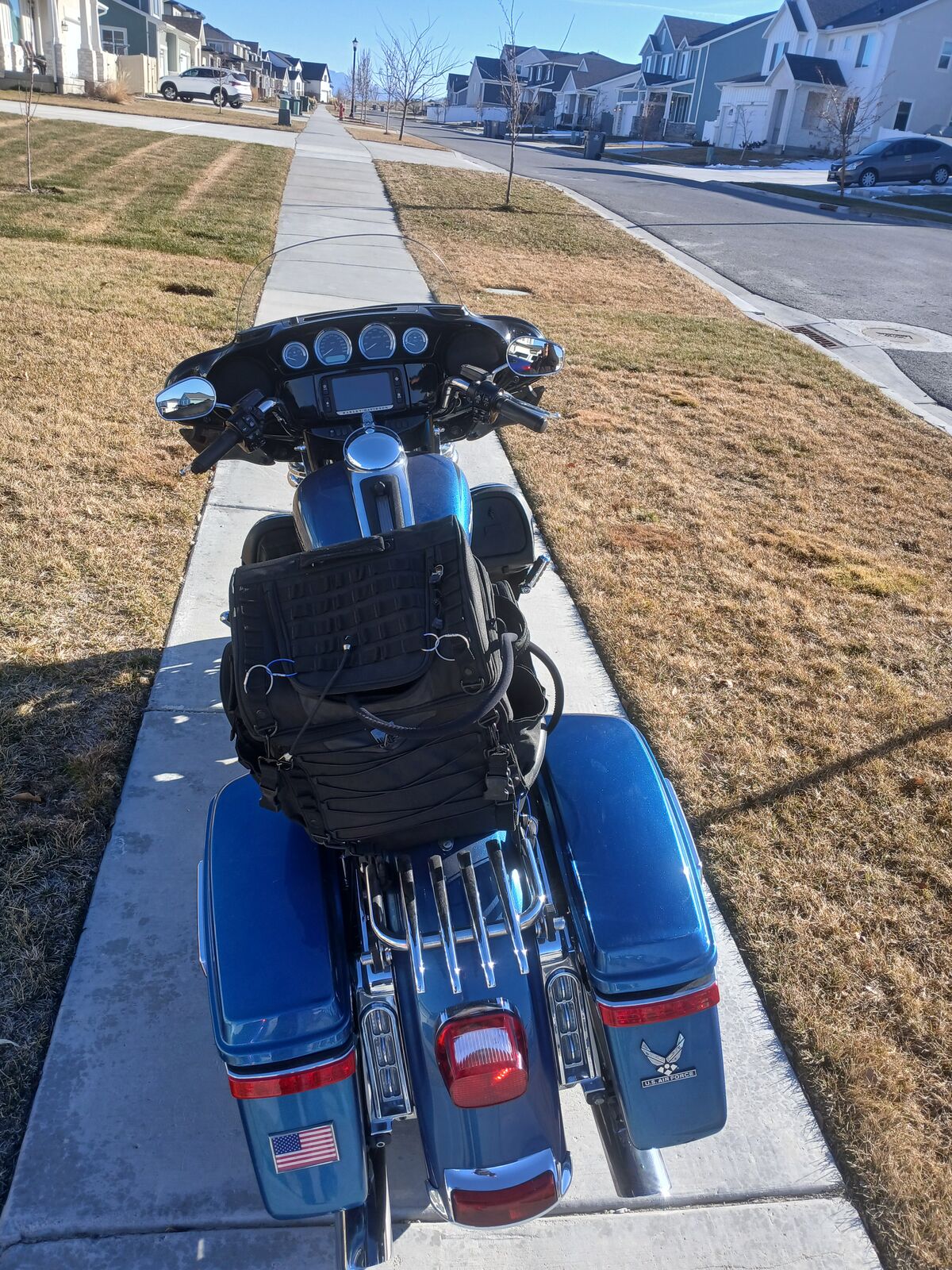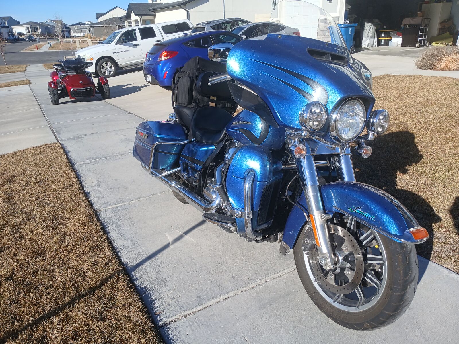 ZelleIf you are 5'7" or less, this is the perfect bike for you!! An Ultra limited Low FLHTK with very low miles in good shape! They dont make these anymore. It has the water cooled engine, new tires w/less than 2000 miles on them. When I bought it I put a new radio/sound system in w/bluetooth...it works fantastic. Gorgeous metalic blue paint. It does not have the rear hard bag, previous owner took it off I guess. I bought it with 5000 miles, I put ~11,000 miles on in 5 years of fun riding. Mileage is 15,950... II still am riding it so the mileage may vary a bit. It has heated grips too. The bike rides perfect. This is the most fun bike I have ever owned but I am selling it due to recent back surgery:-( It also comes with a Cover. The black bag is removable and optional.