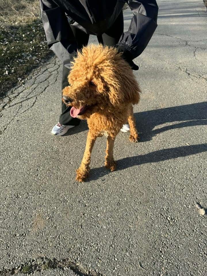 Found red curly haired dog near 21st street pond in Ogden. Wearing collar but has no tags, and scanner found no microchip. Appears to be a poodle mix of some kind.