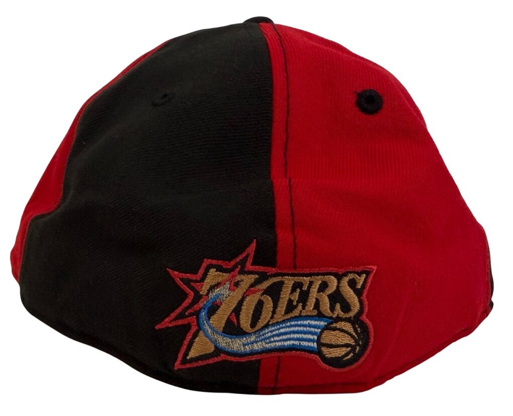 The Vintage Philadelphia 76ers Flat Brim Pinwheel Fitted Hat by New Era is an officially licensed cap designed for basketball fans. This red and black hat features the iconic team logo of the Philadelphia 76ers, making it a must-have item for any NBA enthusiast. The 7 1/2 size ensures a comfortable and stylish fit, perfect for wearing during the regular season games. Show your support for the team with this classic and timeless piece of fan apparel.