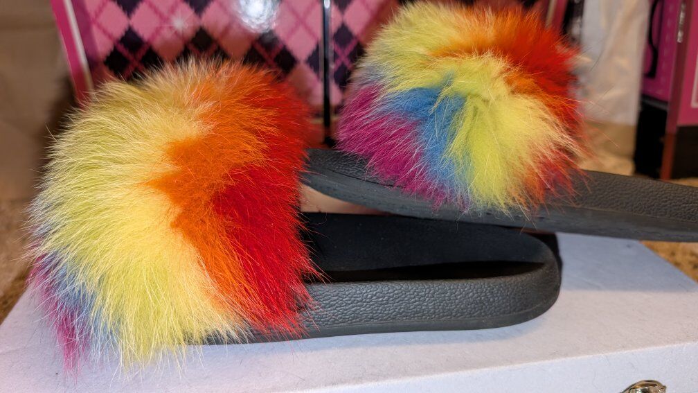 ZelleWomen Multicolored Furry Sandals Size 8 or 9...