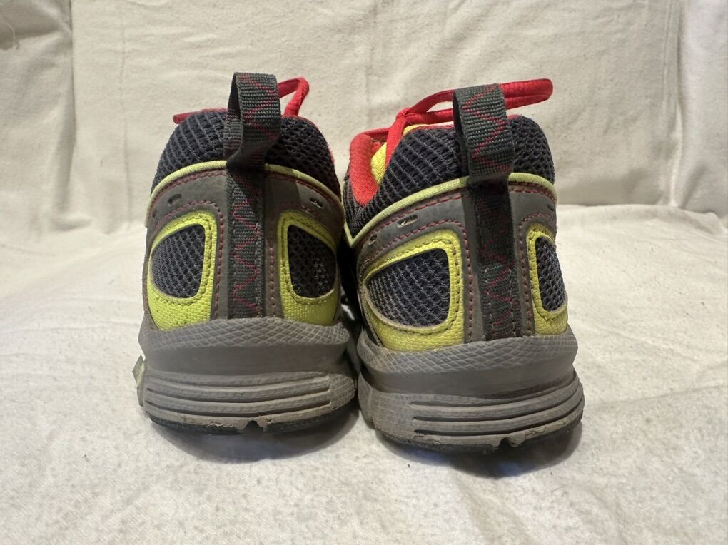 Nike Alvord 9 women’s size 7 gray with yellow and salmon, trim, mesh, and leather trail shoes. These are in good condition except for a couple of little spot on the back of the heel area. See photos for details. I take cash or Venmo, but cash is preferred. Text is best. 801-201-4446. Check out my other ads for additional sizes and styles.