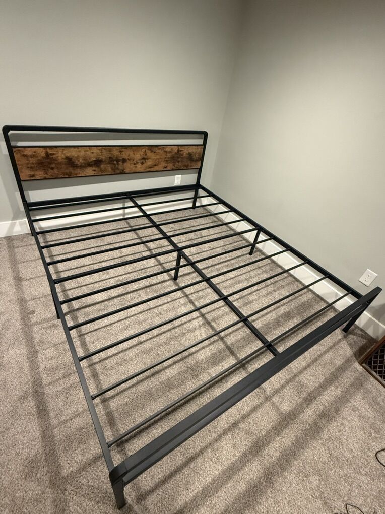 ApplePayBed frame was setup in our guest room for a few months. California King size. No box spring is required with this frame. Like new condition. Includes complete bed frame and all hardware/tools for assembly. It is easy to assemble and has been taken apart/ready to move! Located in Sugarhouse. $100 obo.