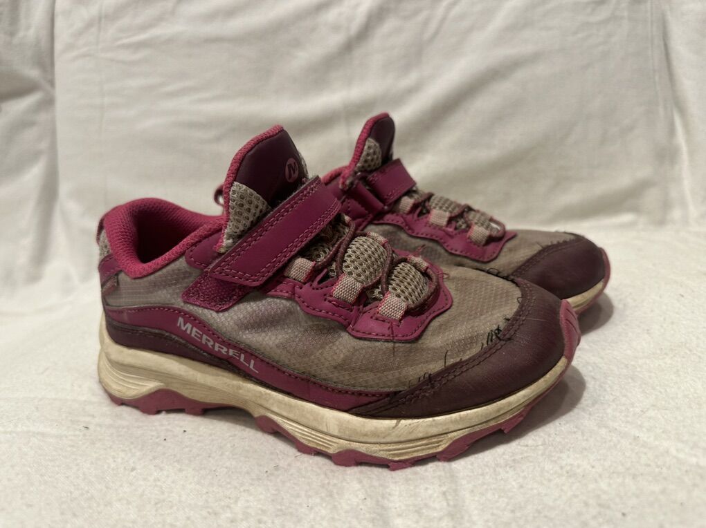 Merrell youth size 2 taupe/maroon/hot pink waterproof, hiking shoes. These have the elastic laces with a Velcro strap at the top. They’re in good condition, see photos for details. I take cash or Venmo, but cash is preferred. Text is best. 801-201-4446. Check out my other ads for additional sizes and styles.
