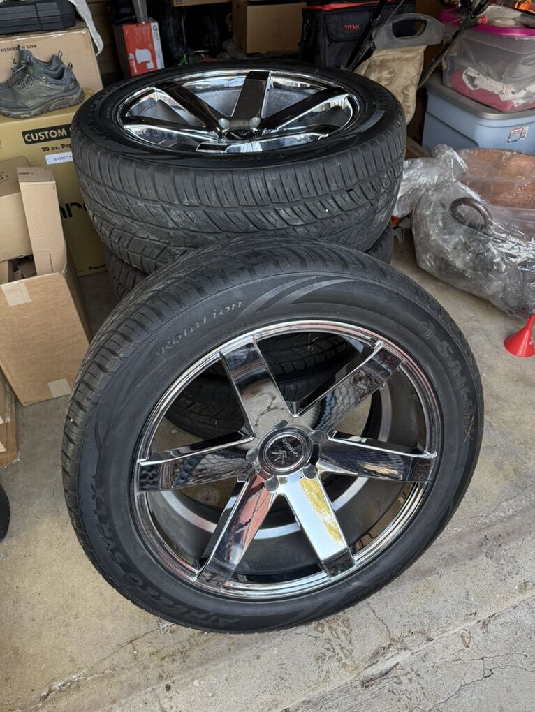 22 x 9.5 Verde Chrome Wheels (5x5.5, 5x139.7) Wrapped in 305/45/22 tires Plenty of life left! Brand new set goes for $3500 just thinking of going for a new summer look on my truck No rush to sell.